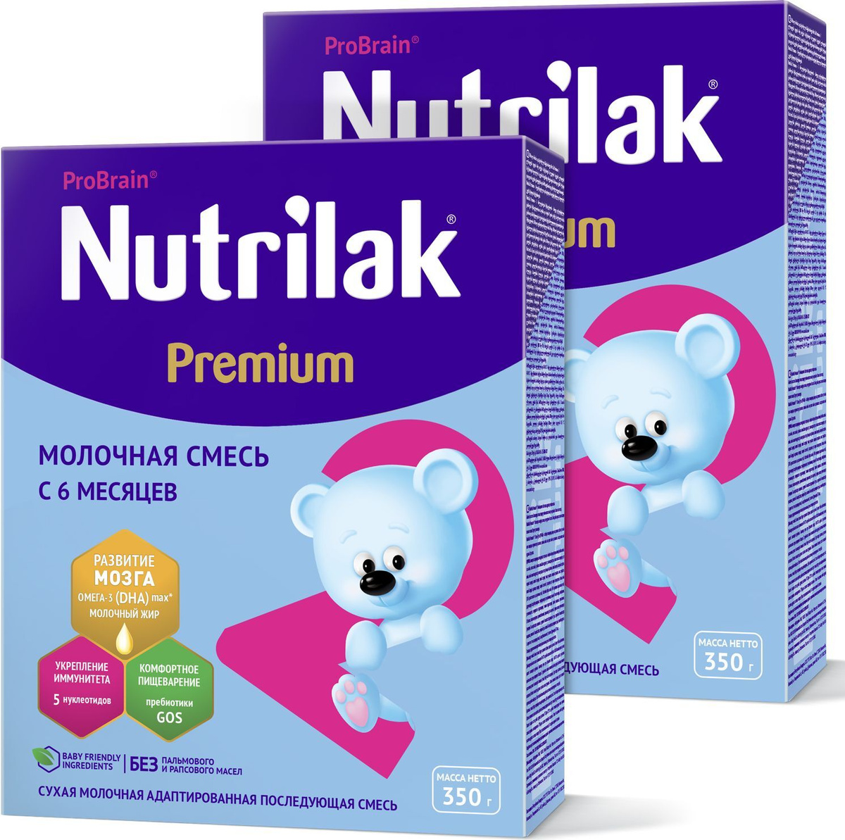 Молочная смесь Nutrilak Premium+ 2, с 6 месяцев, 2 шт х 350 г