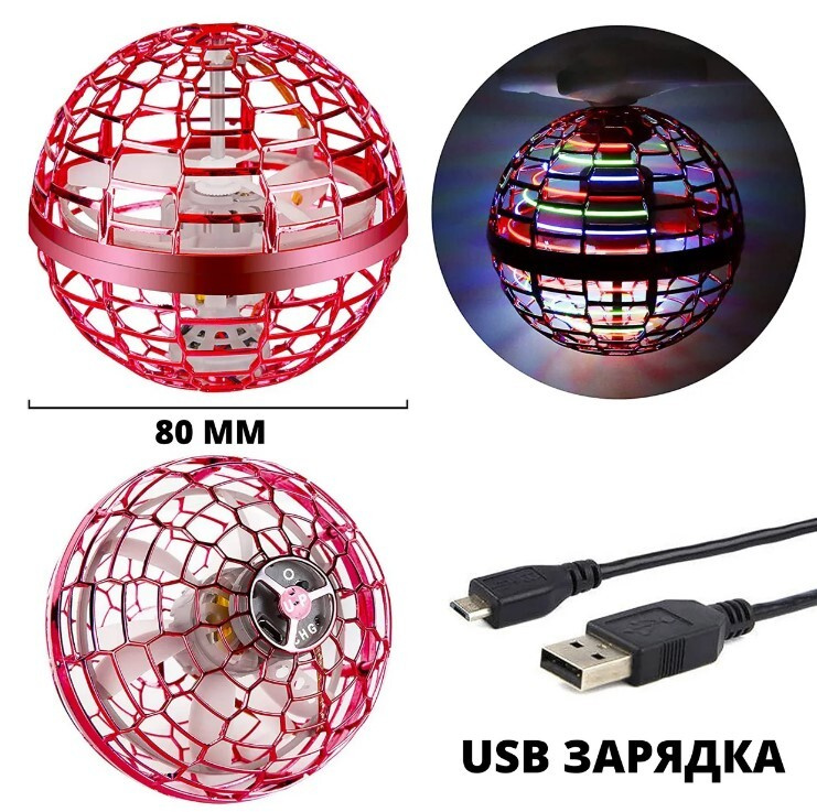Летающий шар бумеранг со светом/ Spin Ball FLYATOR/ Спиннер Красный.ТОРчик 1069