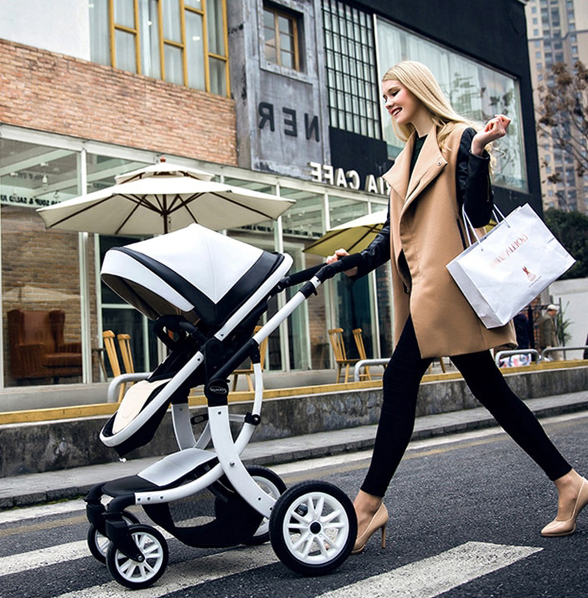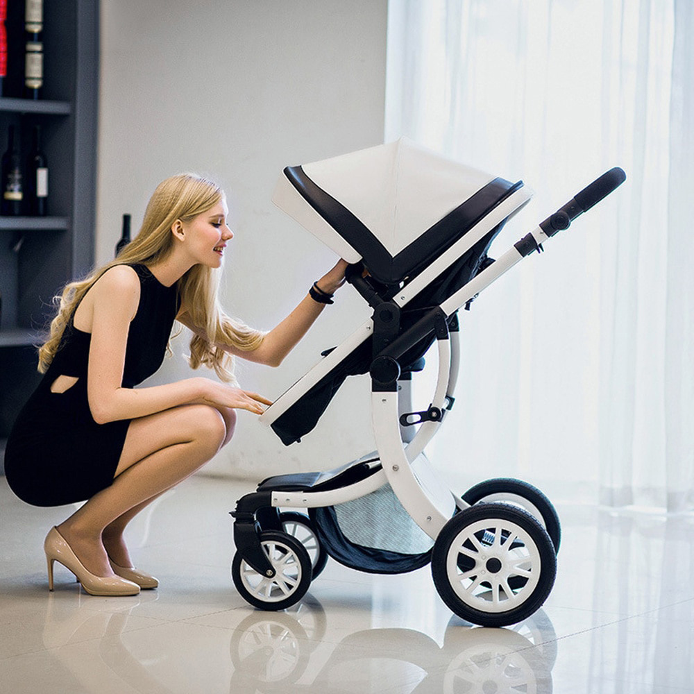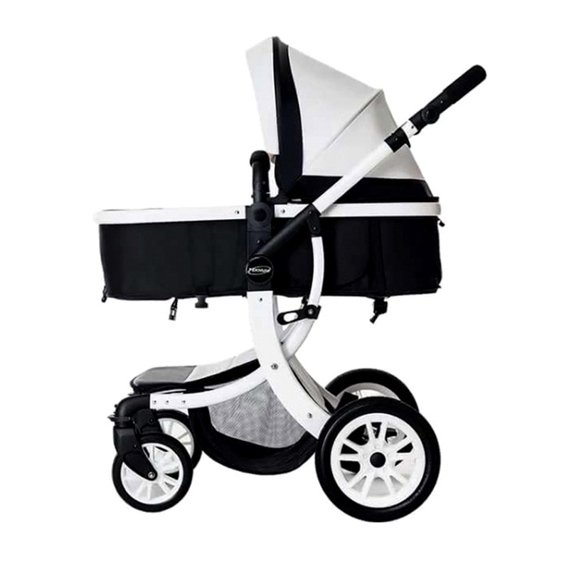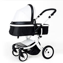 Коляска Трансформер 2 в 1 Luxmom Original 2 в 1. Реверсивный блок. Эко кожа белая с черным.