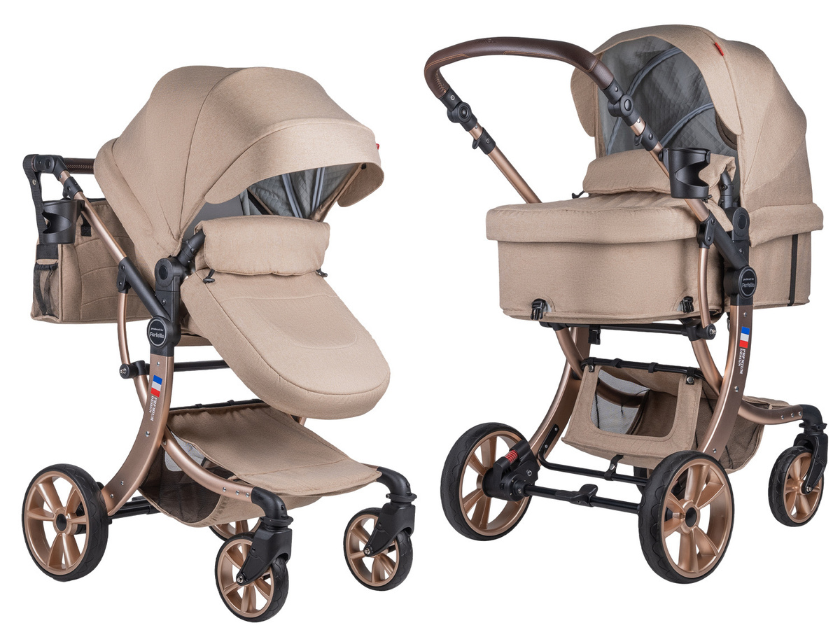 Детская коляска трансформер 2 в 1 Aimile Original New Gold / для новорожденных / цвет кремовый