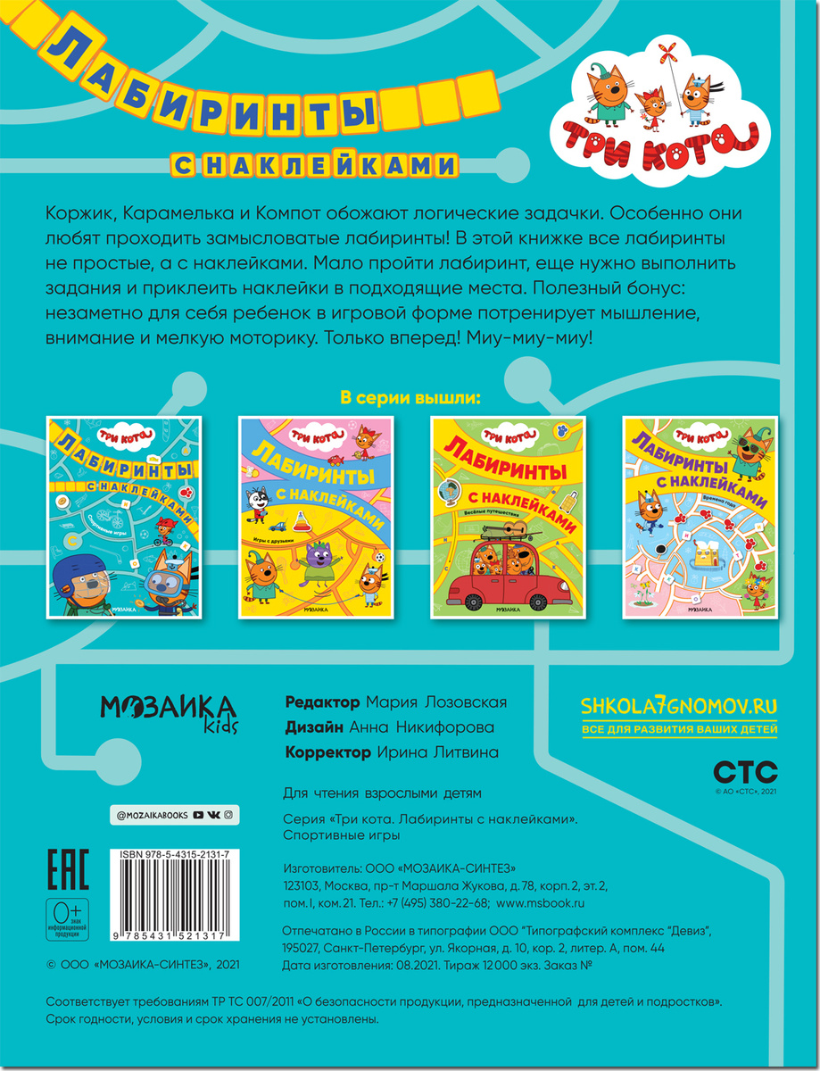 Спортивные игры. Три кота. Лабиринты с наклейками