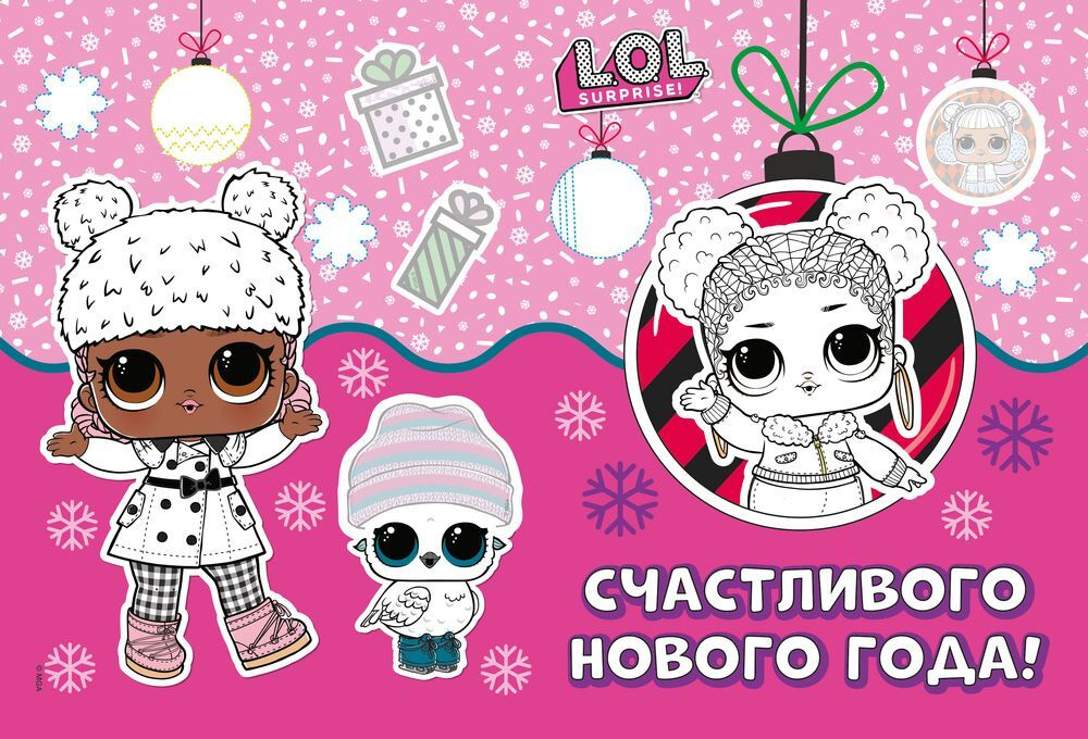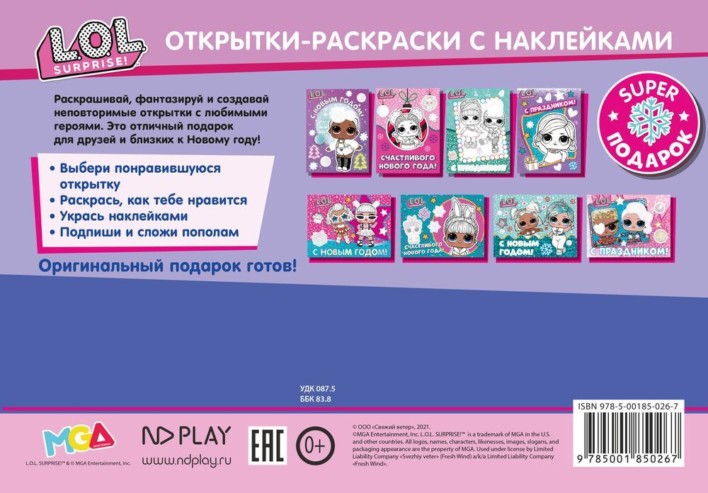 Открытки-раскраски с наклейками / Набор для детского творчества ND Play / Новогодние открытки своими руками. L.O.L. Surprise! Лучший праздник / 240 х 160 мм, 16 страниц / 3+
