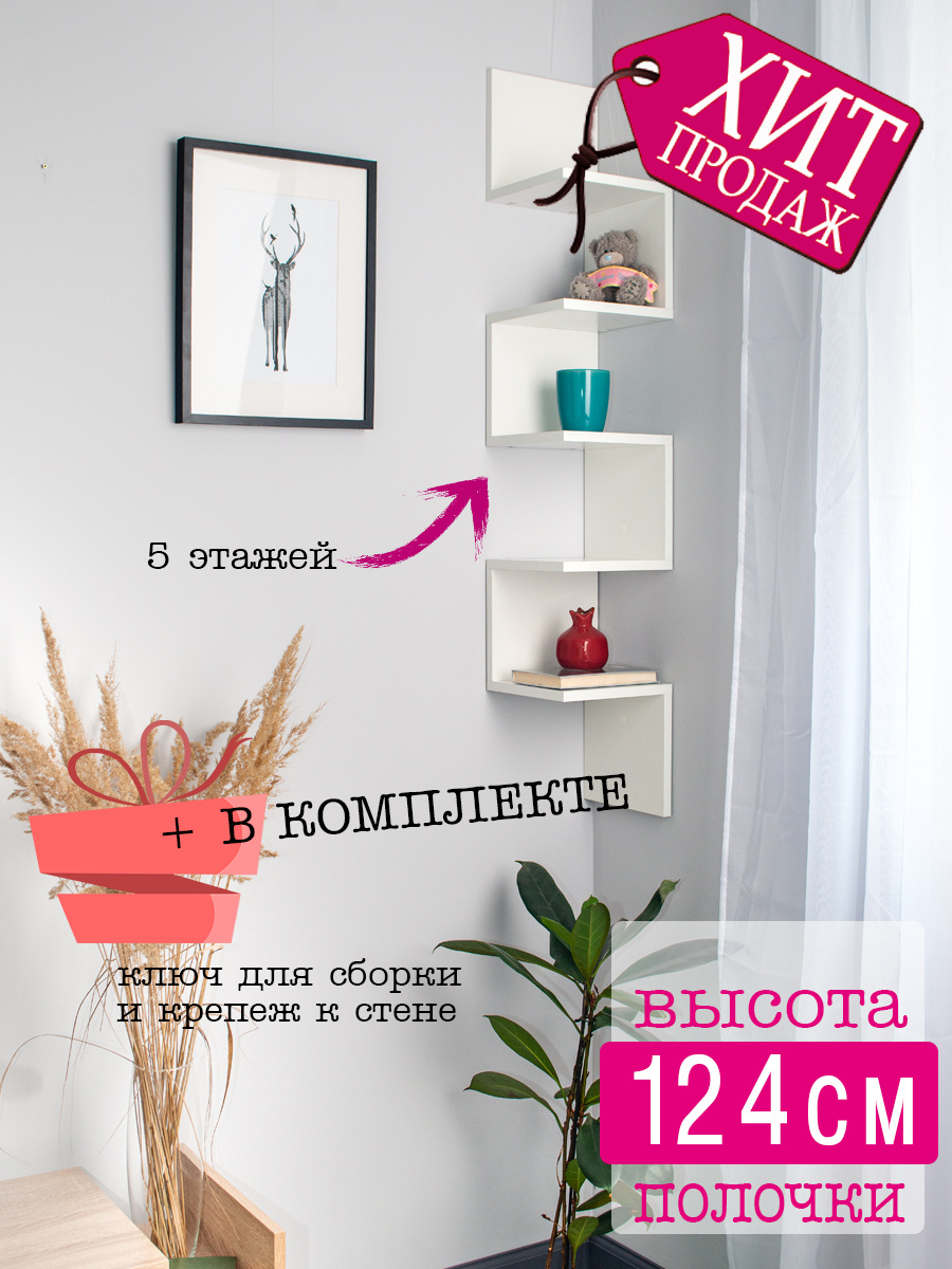Полка Том Полкер Настенная Угловая Ритм, 22х22х124 см, 1 шт.