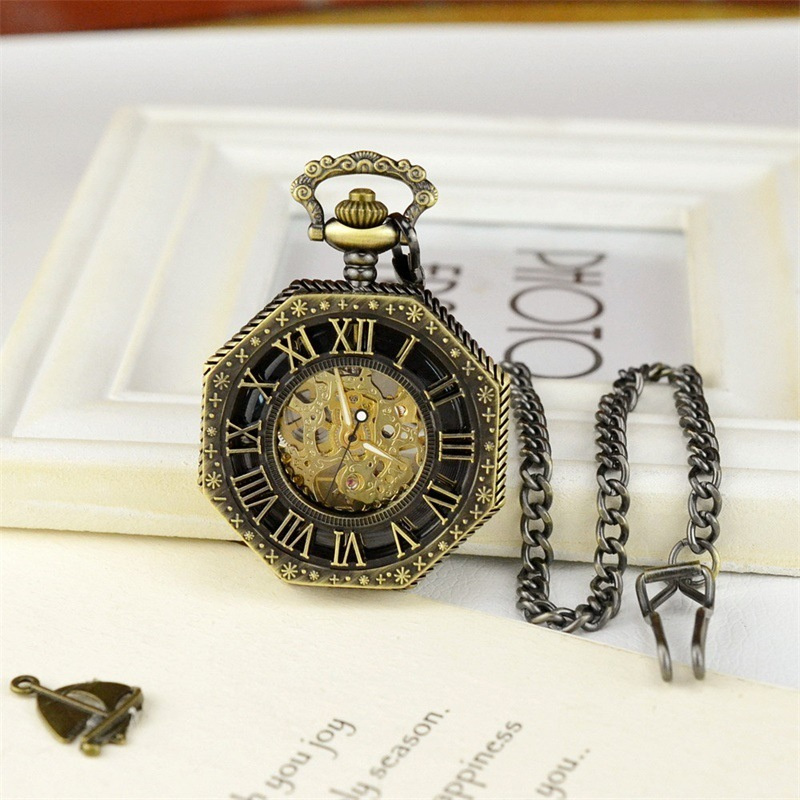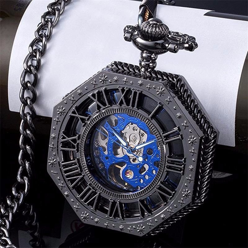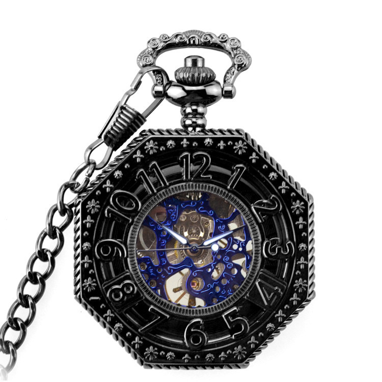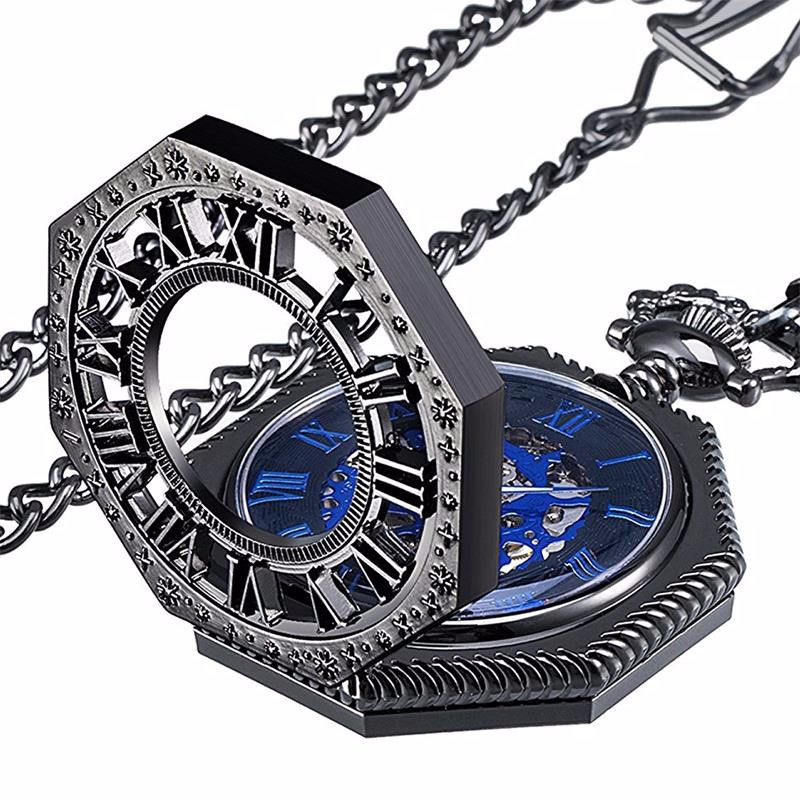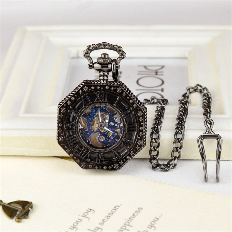Полые карманные часы, гравированные механические карманные часы с восьмым калибром и старинными римскими синими цифрами