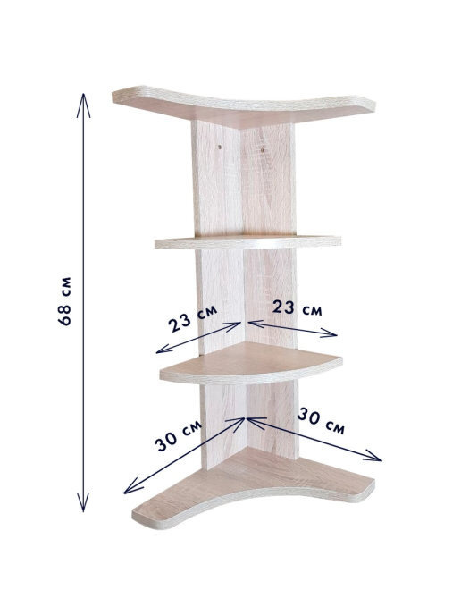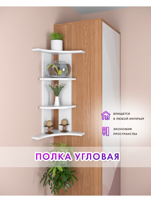 Полка Good-дом, все в дом Настенная Угловая Навесная ЛДСП для книг и сувениров, 30х23х68 см, 1 шт.