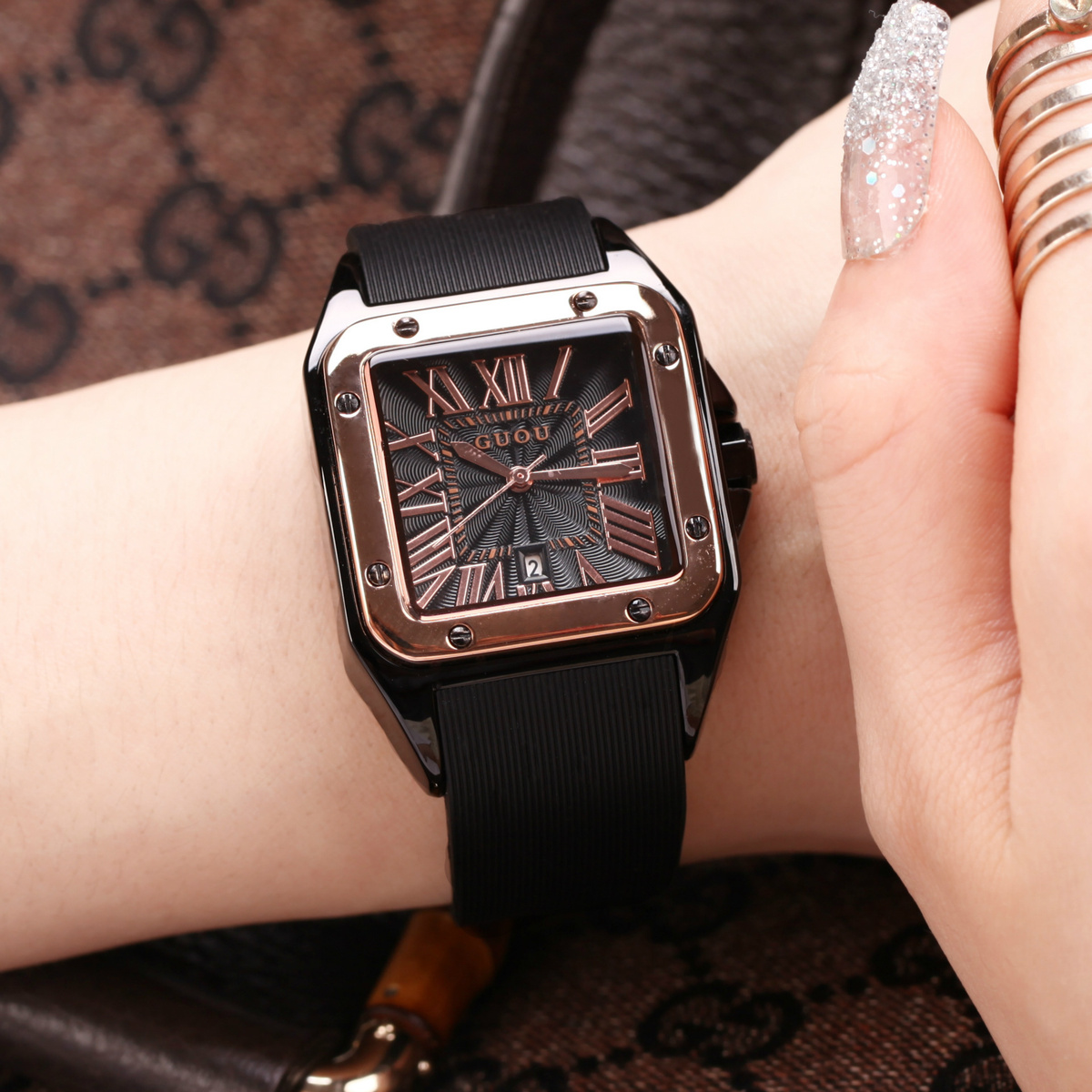 Guou Древние европейские Классические Квадратные Мужские Часы Рим Ретро Женщины Водонепроницаемый Метр Пара Ведение Смотреть