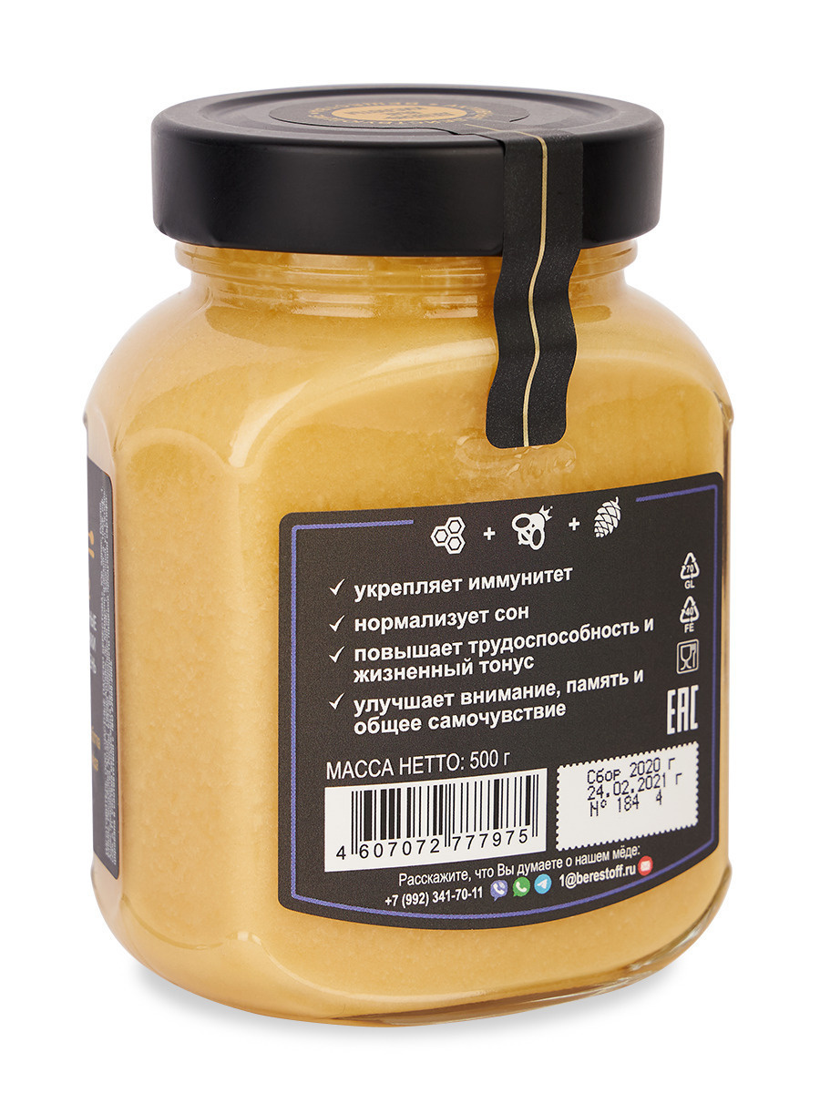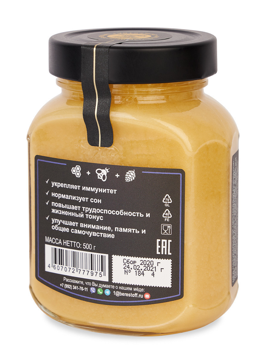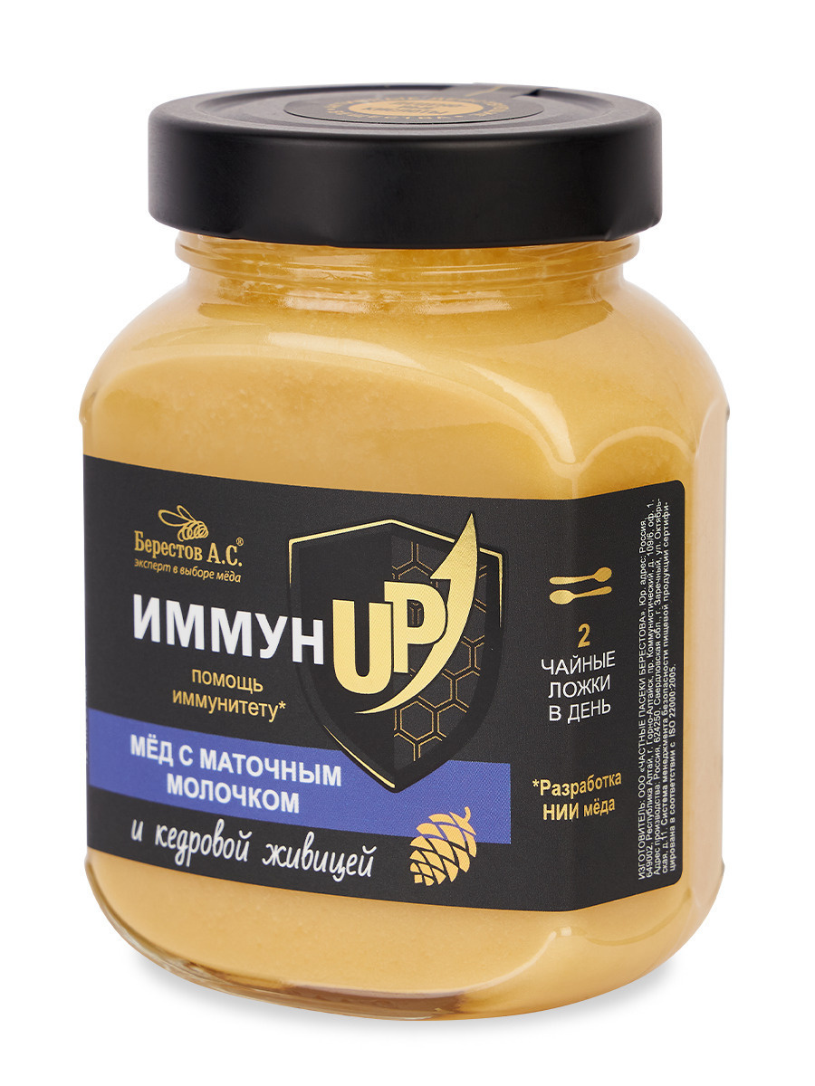Мёд "ИммунUP" с МАТОЧНЫМ МОЛОЧКОМ и кедровой живицей, Берестов А.С., 500 г, здоровье, укрепление иммунитета, ЗОЖ, иммунап