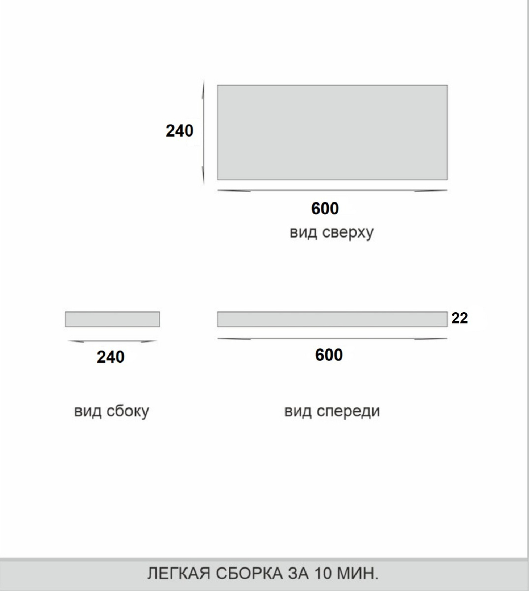 Полка Настенная Прямая П 600.22, 60х24х2,2 см, 1 шт.