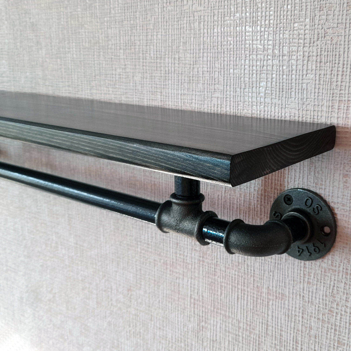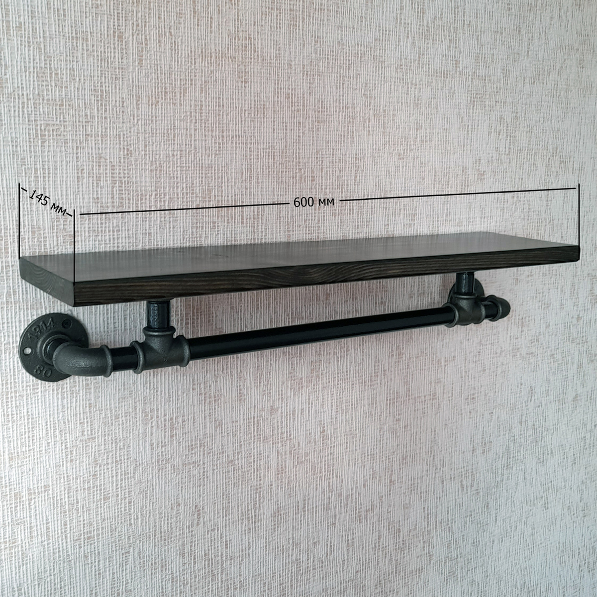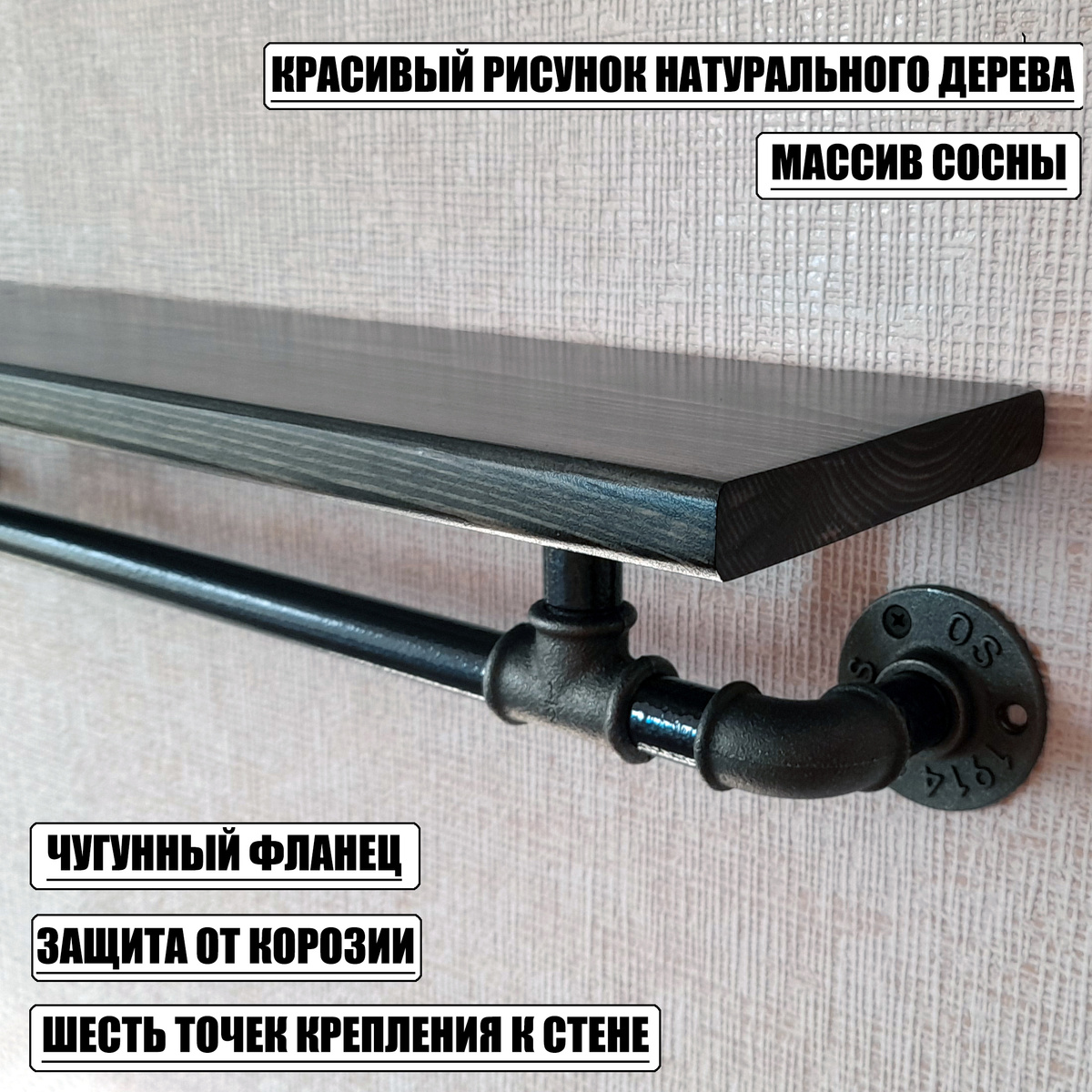 Полка Tricky Pipe Настенная Прямая Лофт настенная со штангой, 60х14.5х12 см, 1 шт.