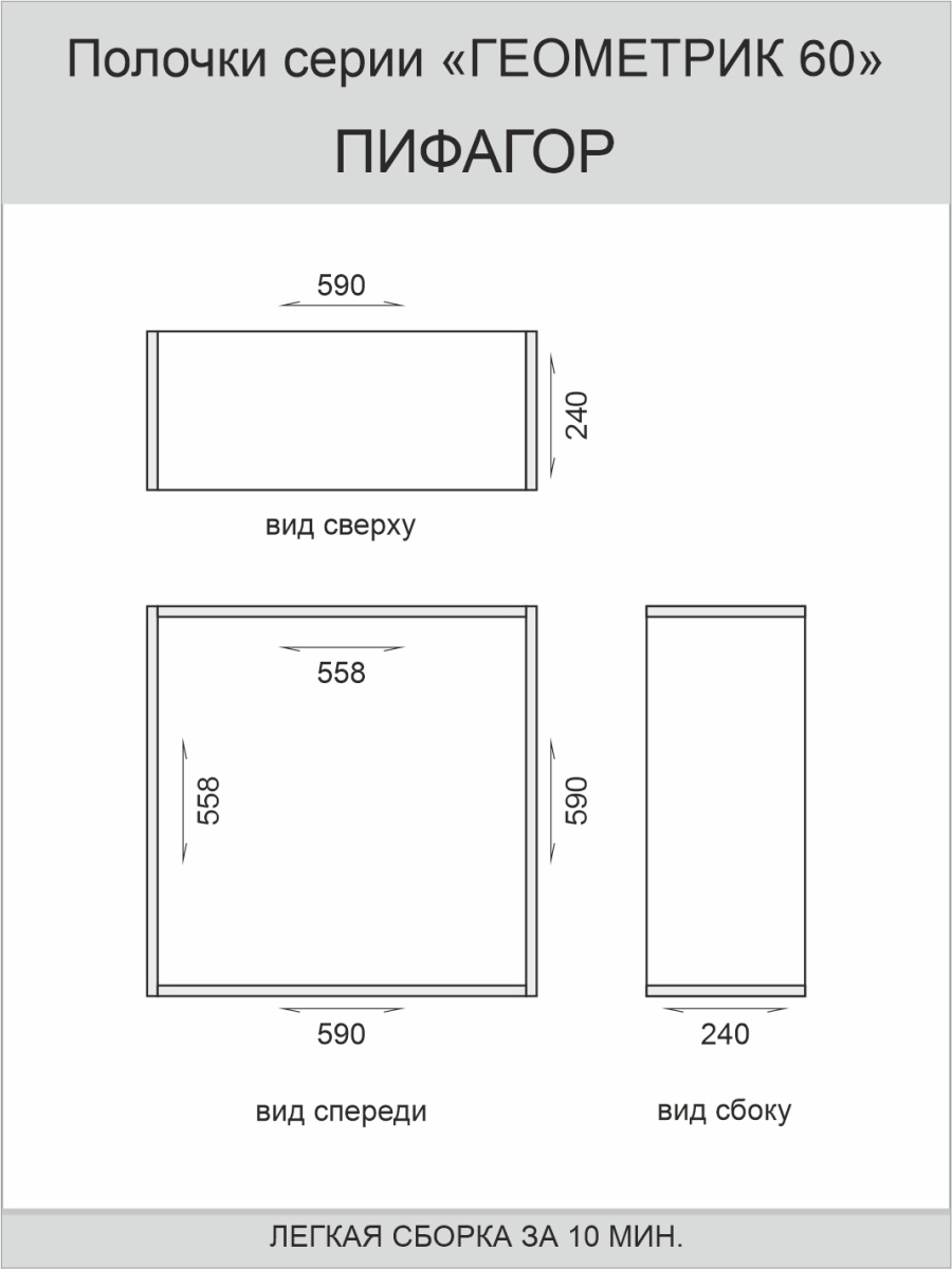 Полка Том Полкер Настенная Прямая "Геометрик 60 Пифагор", 59х59х24 см, 1 шт.