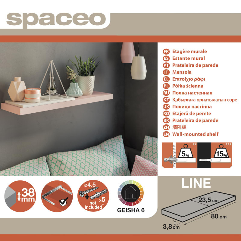 Полка Spaceo 800x235x38 мм, МДФ, цвет розовый, 80х23х3.8 см