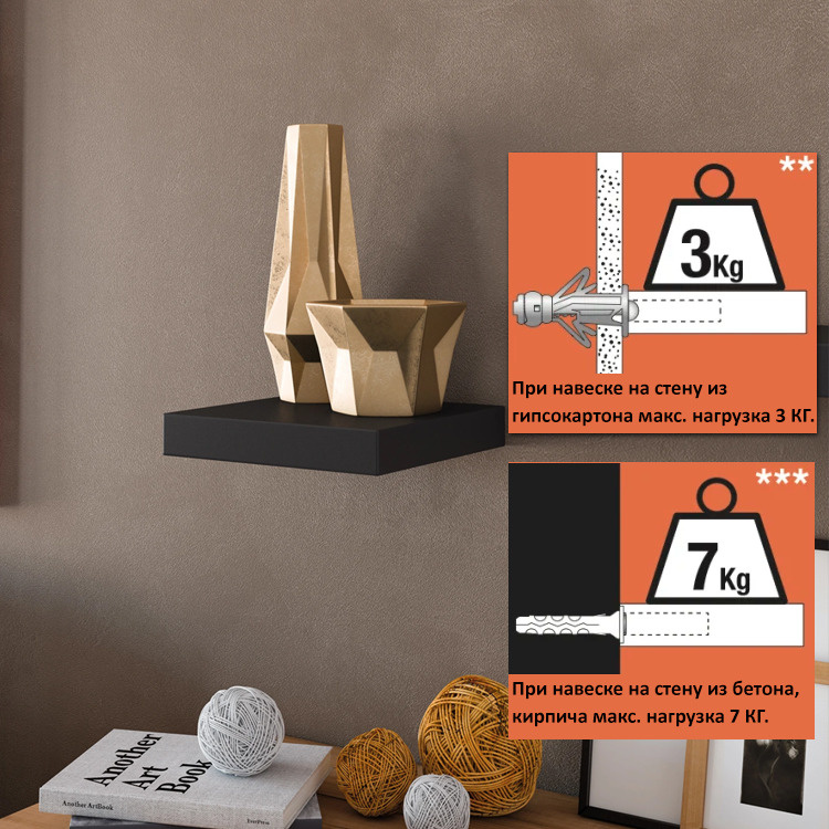 Полка Настенная Прямая 232338shelfblack4588982021, 230х23х3.8 см, 1 шт.