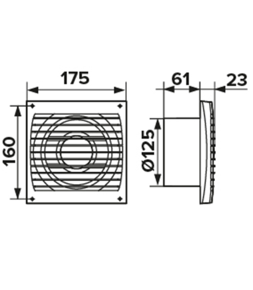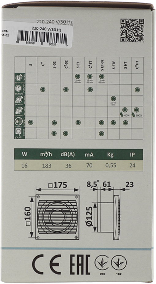 Вентилятор осевой ERA 5S-02 с тяговым выключатетлем 175х175 мм d125 мм белый