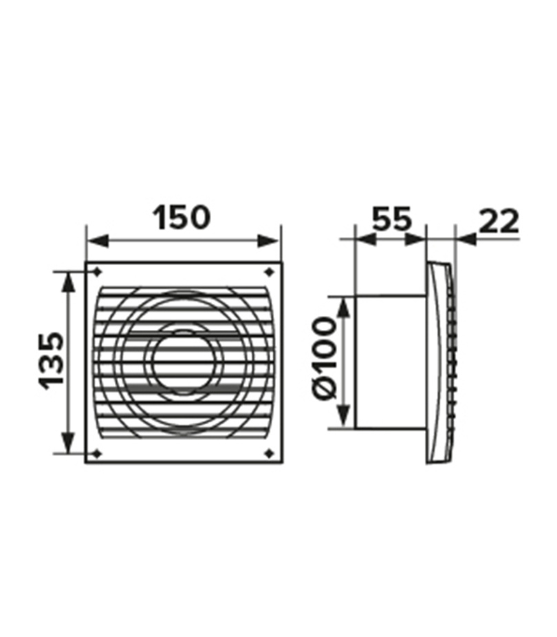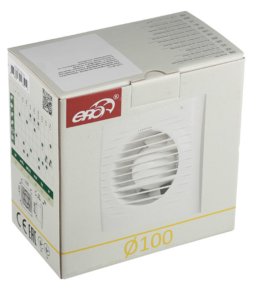 Вентилятор осевой ERA 4S-02 с тяговым выключатетлем 150х150 мм d100 мм белый