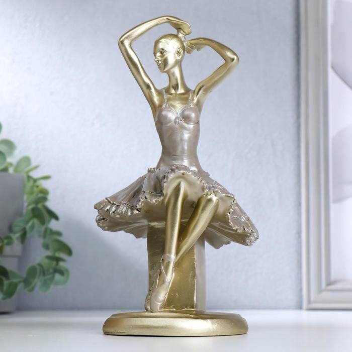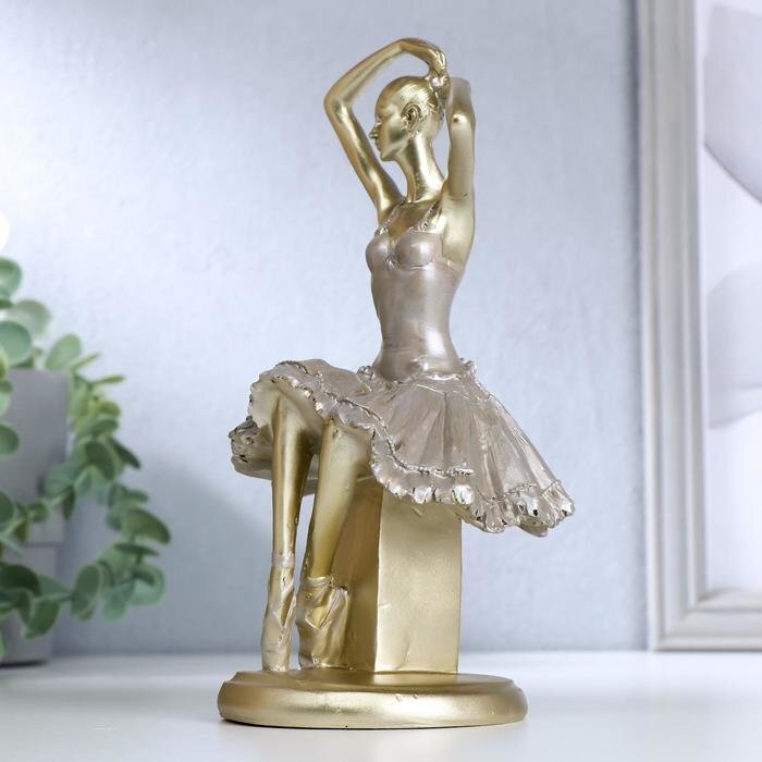 Сувенир полистоун "Балерина готовится к сцене в жемчужной пачке" 21х11х12 см