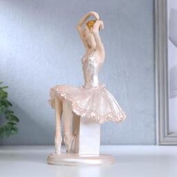Сувенир полистоун "Балерина готовится к сцене в перламутро-розовой пачке" 21х11х12 см