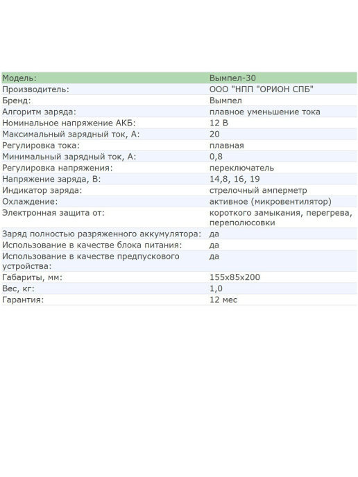 - Минимальный ток заряда, А 0.8