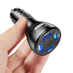 Автомобильное зарядное устройство, 50Вт QC3.0 4USB, быстрая зарядка, одно на четверых, черный, изысканная упаковка, 1шт