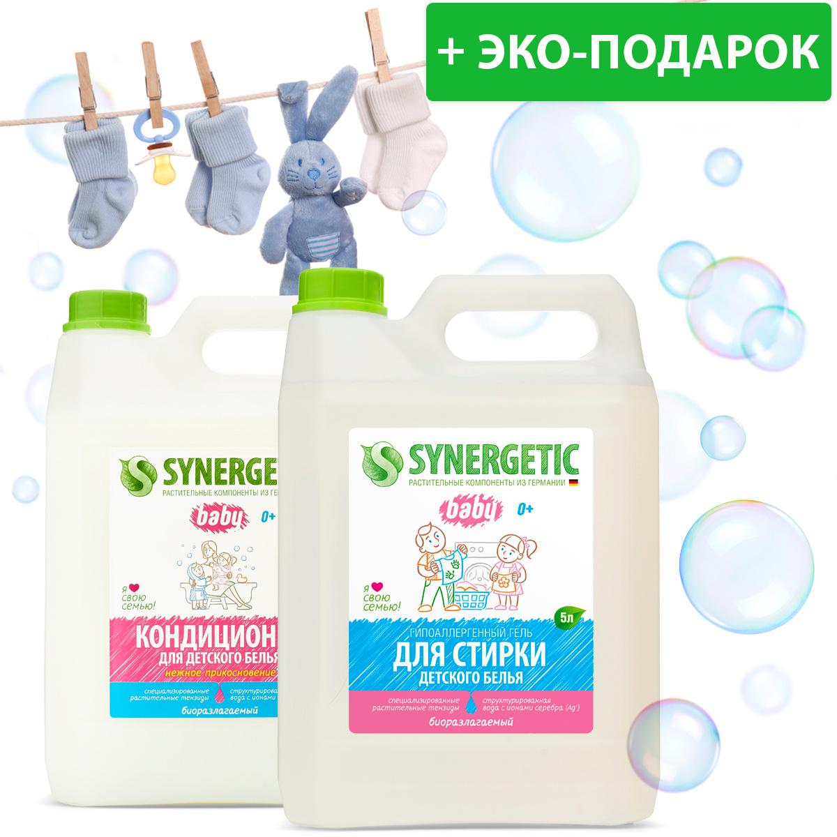 Набор экосредств SYNERGETIC для стирки детского белья, 5л + Кондиционер для детского белья "Нежное прикосновение", 5л. Уцененный товар