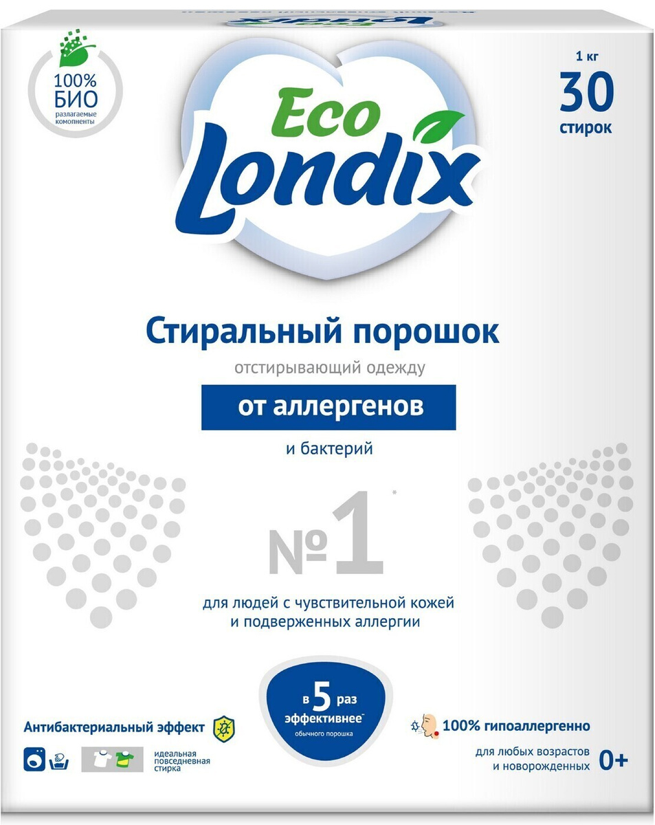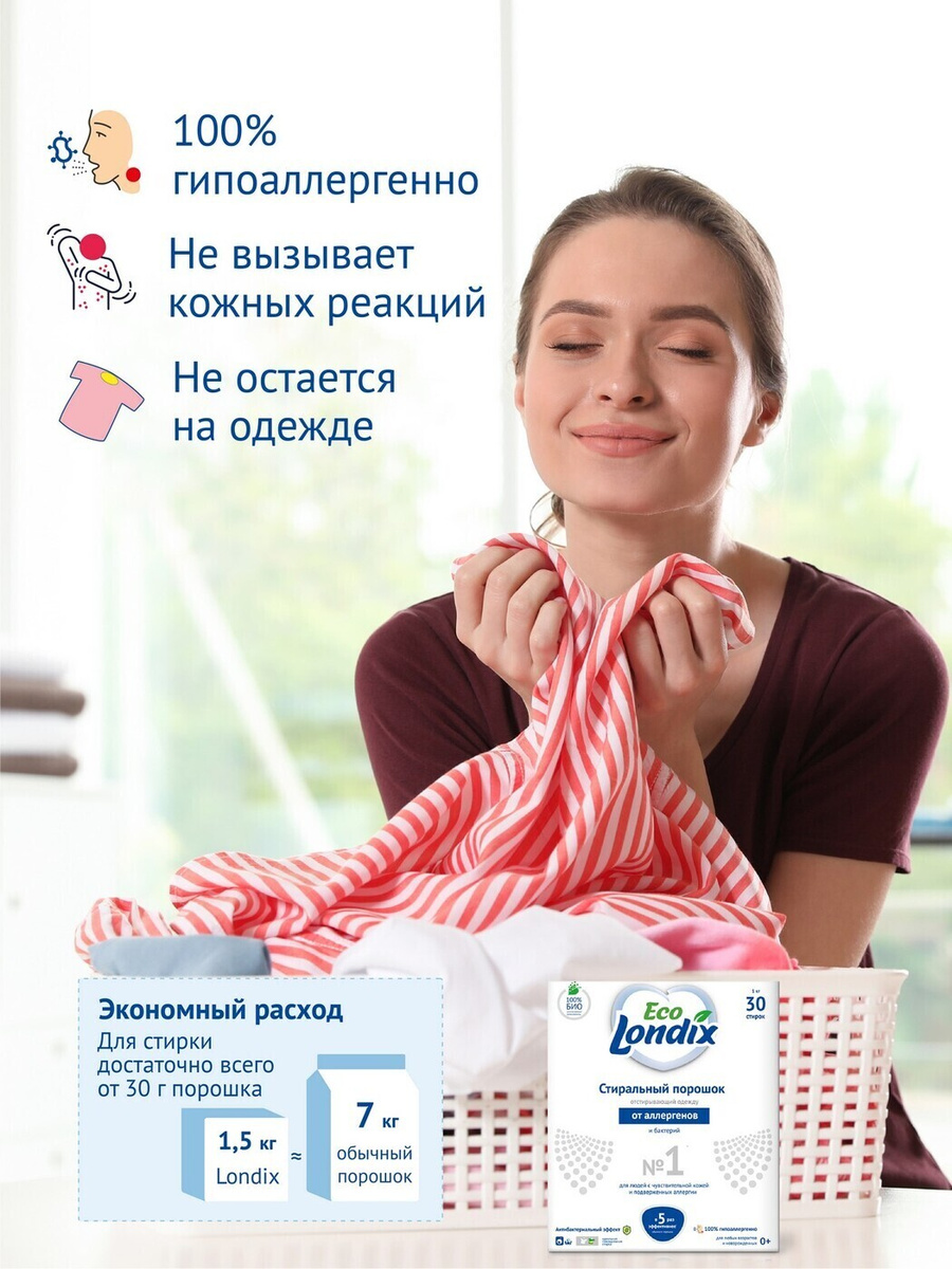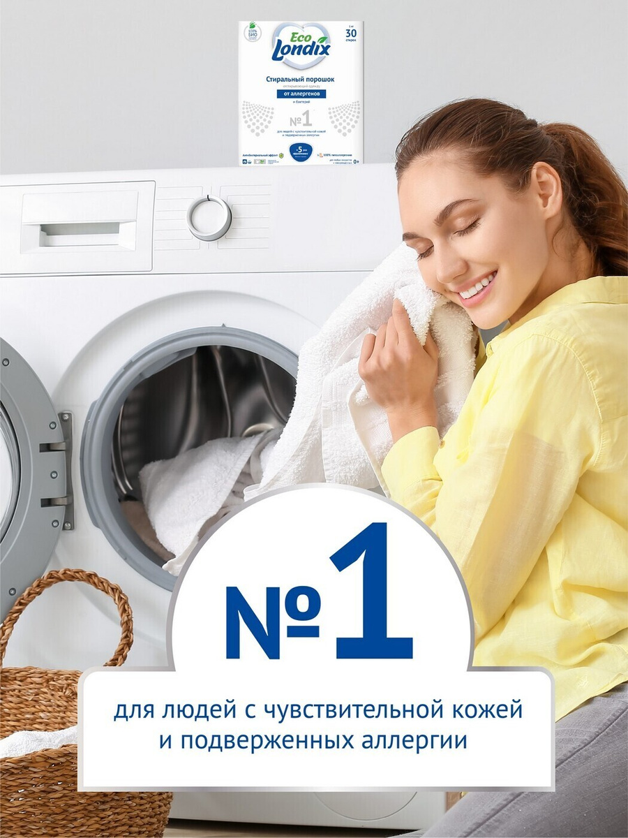 Экологичный гипоаллергенный стиральный порошок для аллергиков и людей с чувствительной кожей Eco Londix, 30 стирок. Уцененный товар