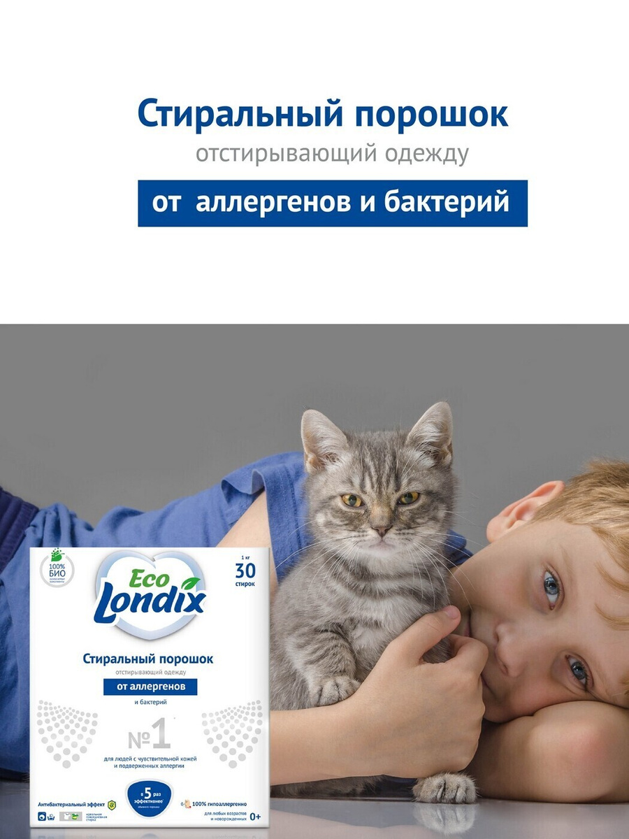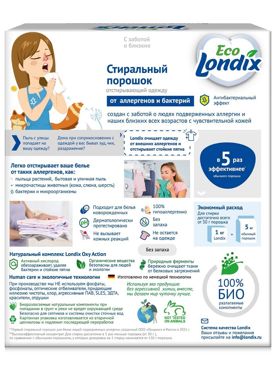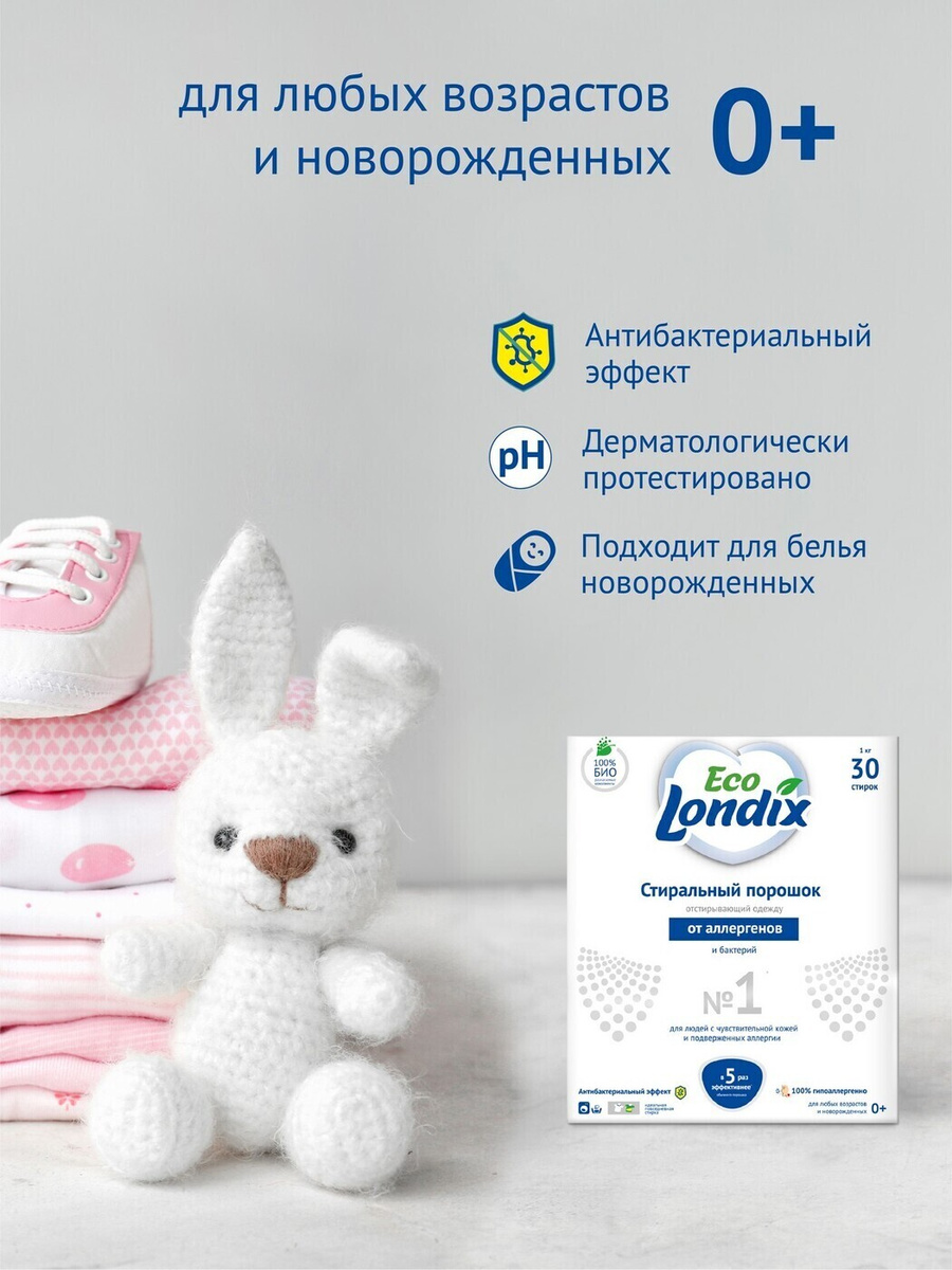 Экологичный гипоаллергенный стиральный порошок для аллергиков и людей с чувствительной кожей Eco Londix, 30 стирок. Уцененный товар