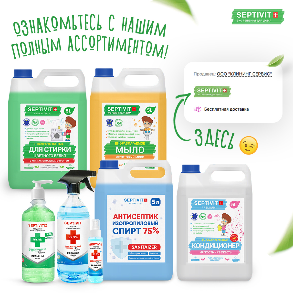 ГЕЛЬ ДЛЯ СТИРКИ белья 5 л SEPTIVIT PREMIUM / КОНДИЦИОНЕР ДЛЯ БЕЛЬЯ 5 л Септивит / Набор для стирки белья 5 л. гель + 5 л. кондиционер /Средство для стирки / Жидкий порошок / Гель для детского белья
