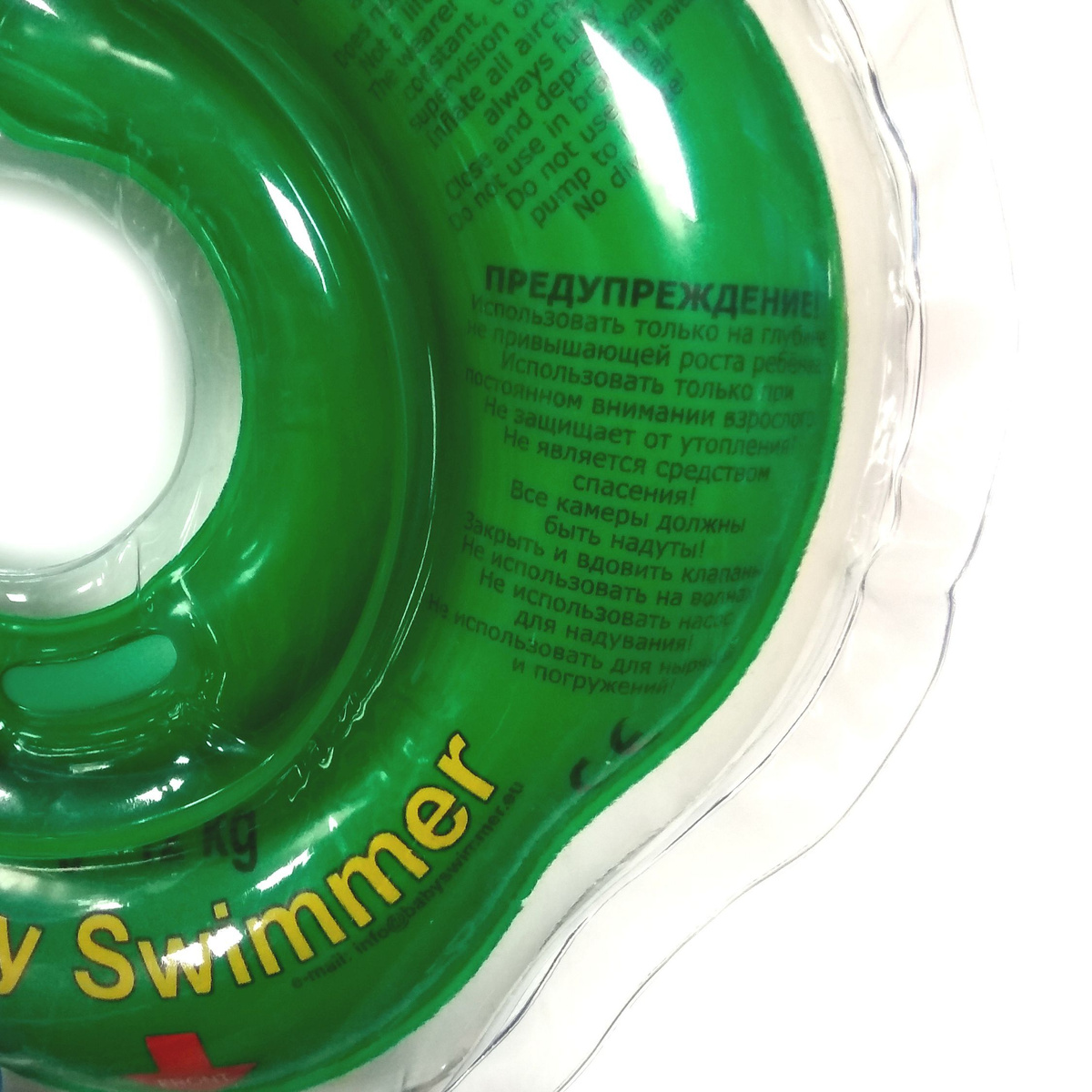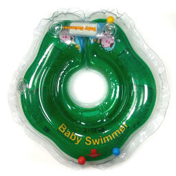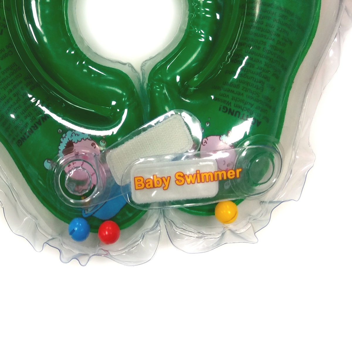 Надувной круг Baby swimmer для купания новорожденных на липучках с погремушкой, 0-2 года, диаметр 8 см, зеленый