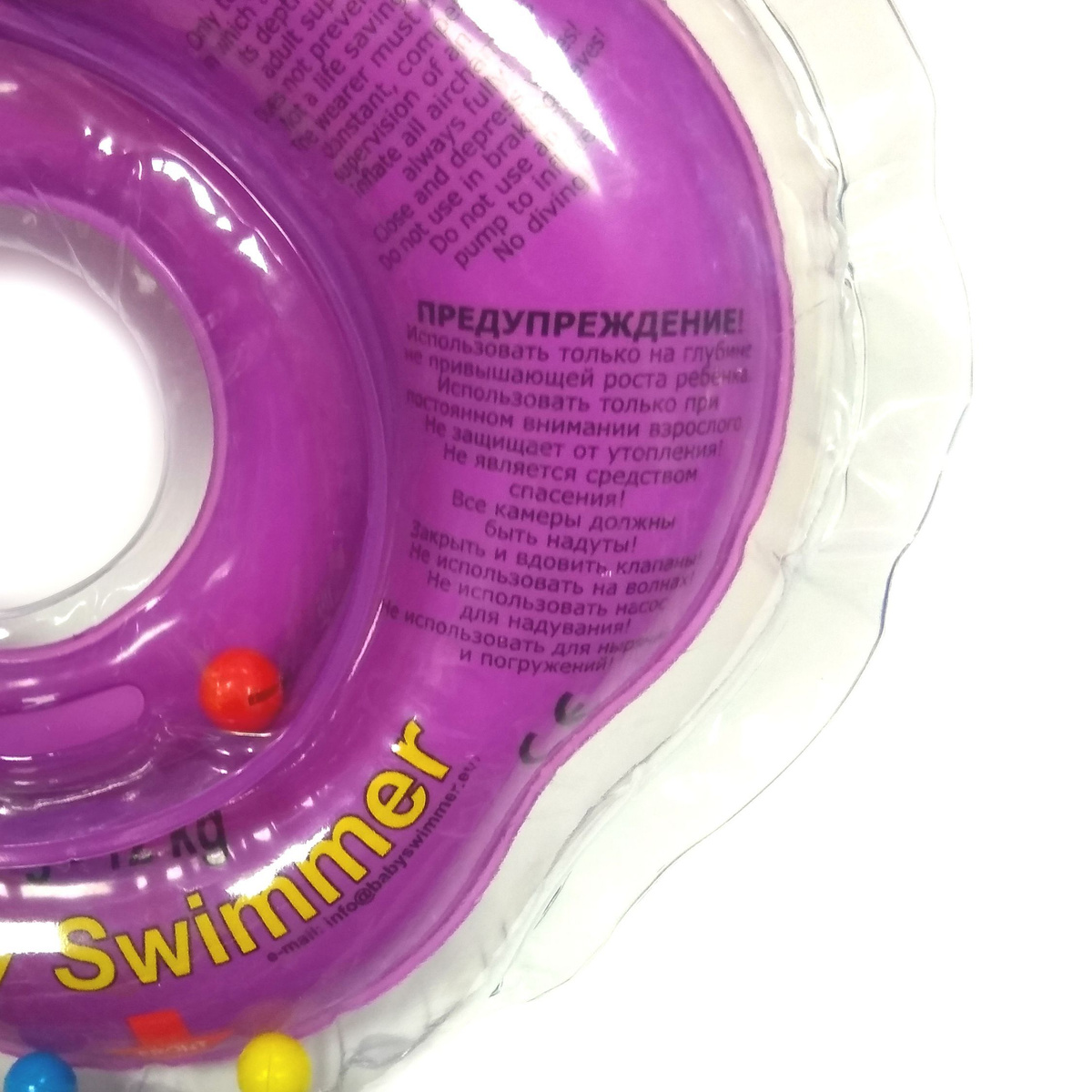 Надувной круг Baby swimmer для купания новорожденных на липучках, 0-2 года, диаметр 8 см, фиолетовый