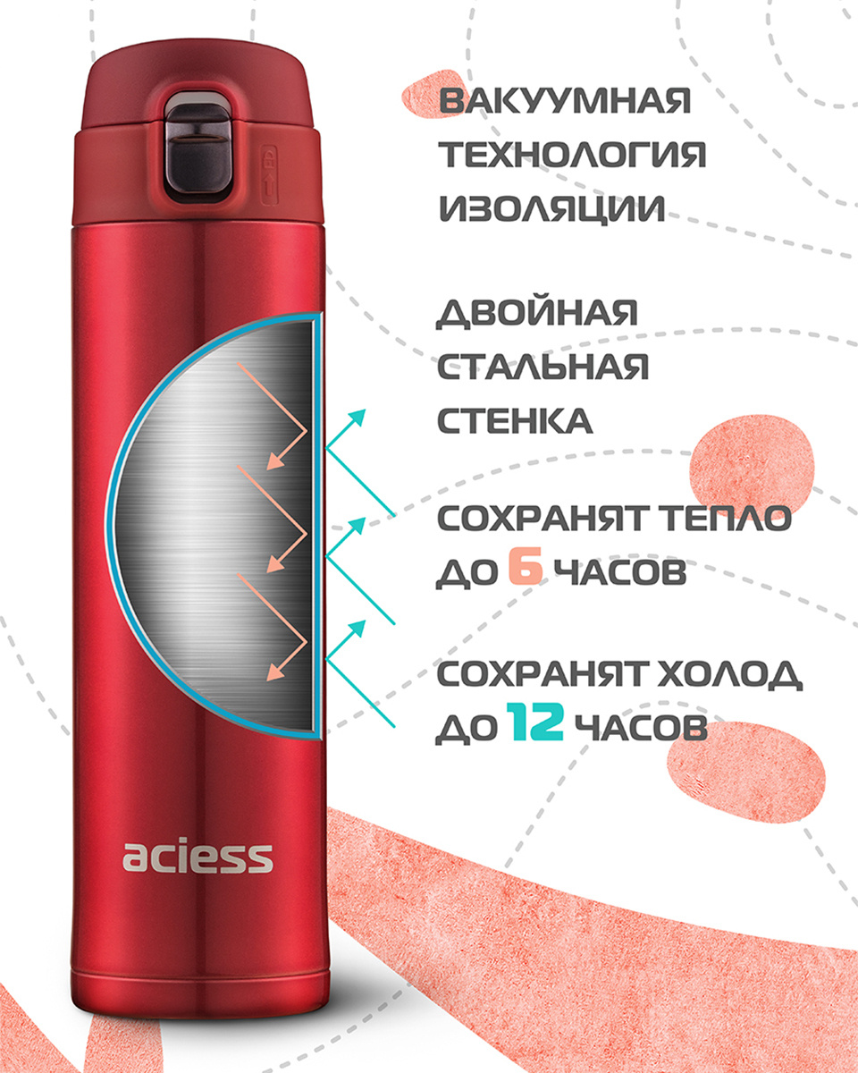 Термокружка aciess Держит тепло до 8ми часов/ Термос не проливается