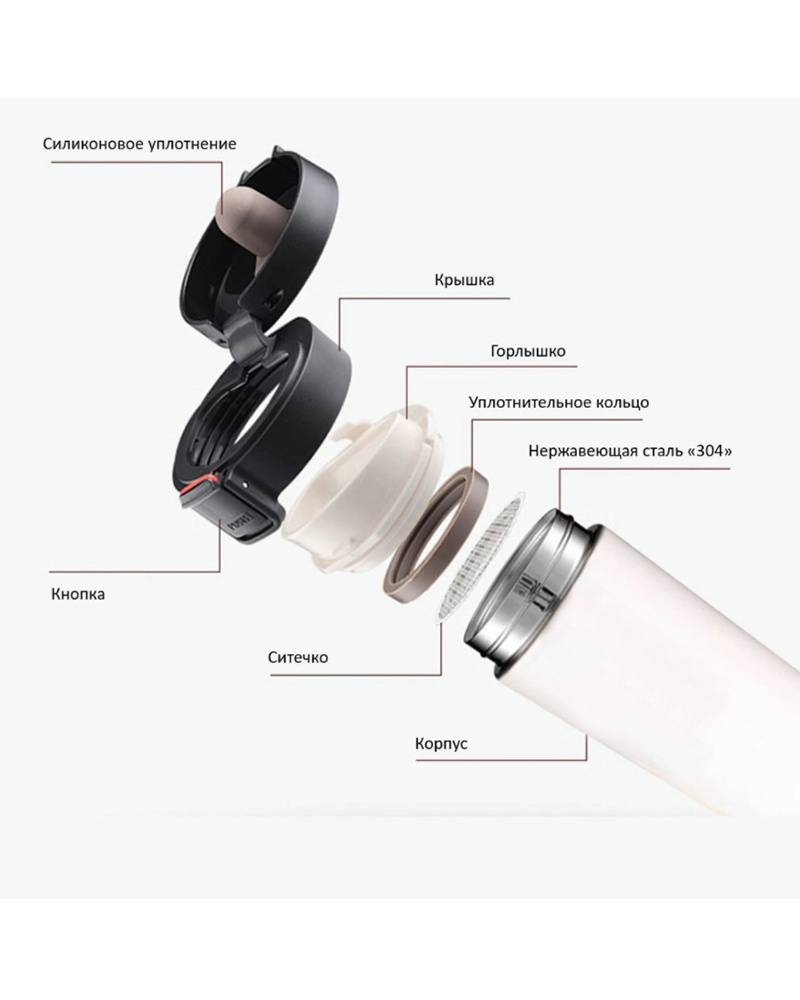 - Особенность термокружки С ситечком, Непроливайка, Отверстие для питья