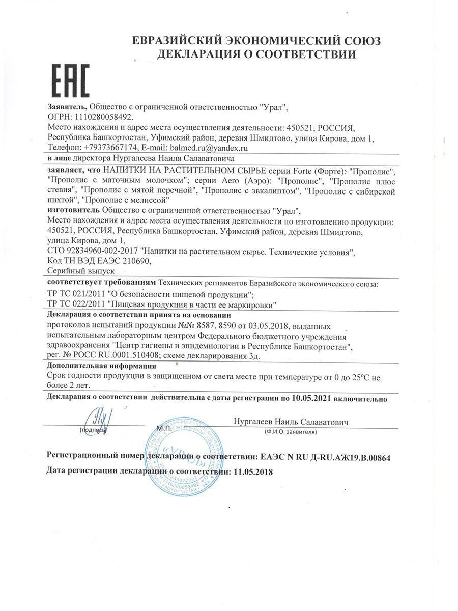 Урал / Прополис Forte (водный, спрей назальный/капли в нос, 10 мл)