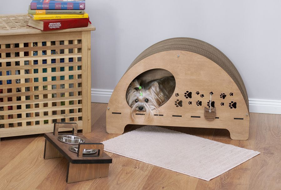 Домик для животных с картонной когтеточкой ЧеширБел Эскимос, 65 x 41 x 36 см, цвет орех