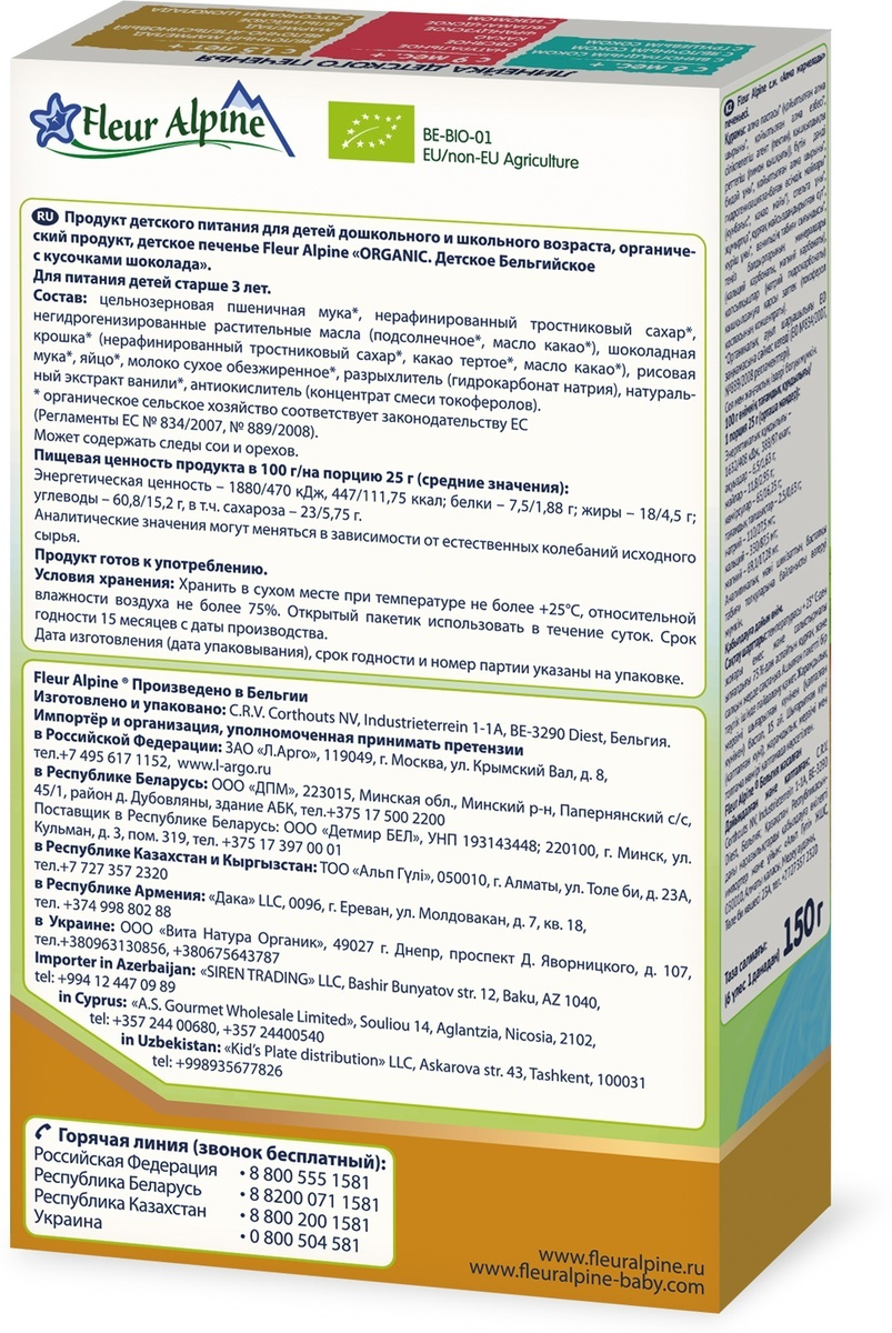 Печенье детское Fleur Alpine Бельгийское, с 3 лет, 150 г