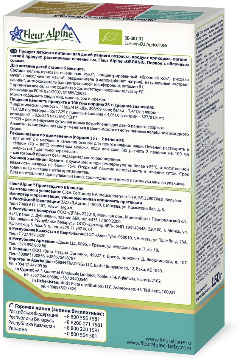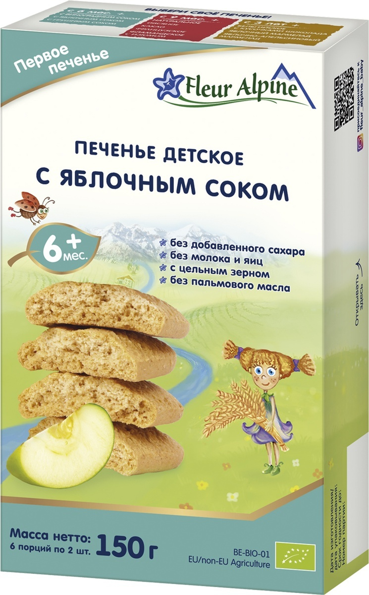 Печенье детское Fleur Alpine с Яблочным соком, с 6 месяцев, 150 г