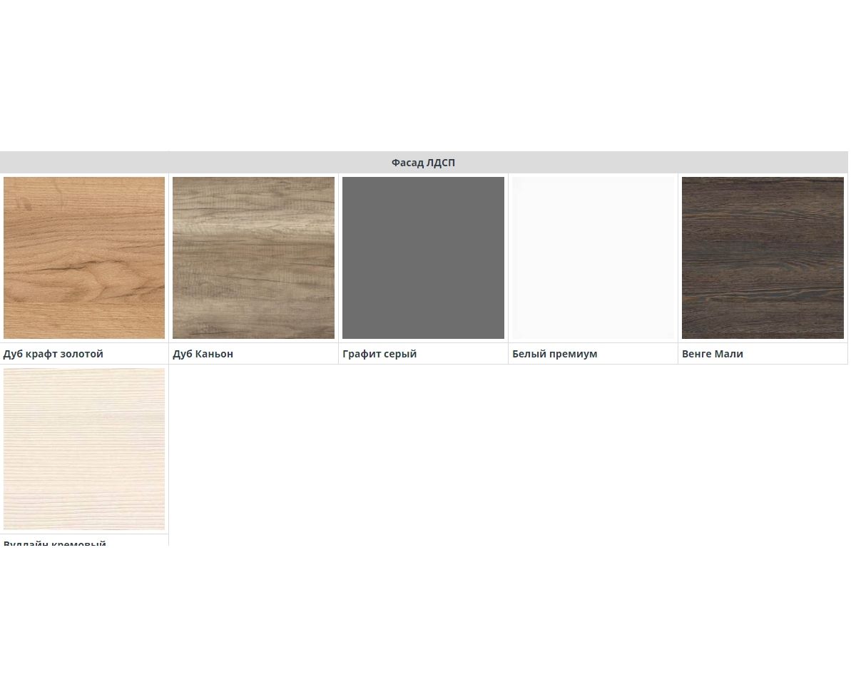 • Цвет верхнего фасада белый, венге, вудлайн кремовый, графит, дуб каньен, дуб крафт золотой