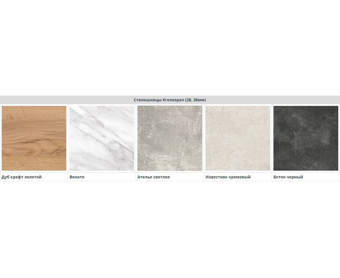 • Цвет столешницы ателье светлое,, бетон черный,, венато,, дуб крафт золотой,, известняк кремовый