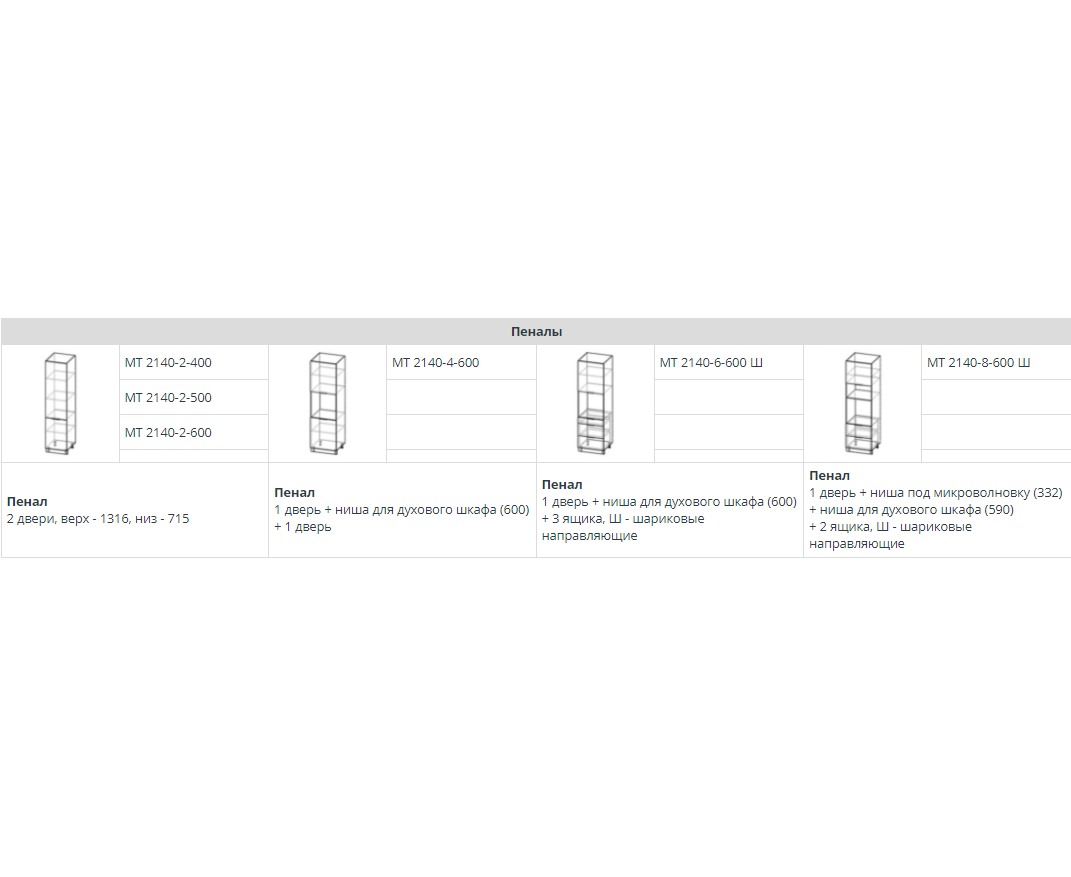 • Столешница отдельна на каждый шкаф (можно сплошную)