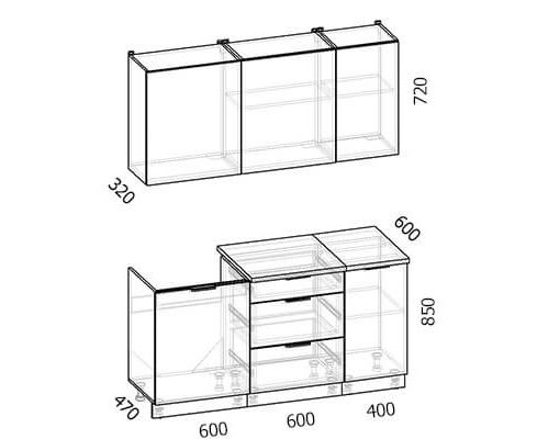 • Столешница отдельна на каждый шкаф (можно сплошную)