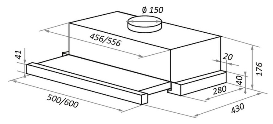 • Размеры 600x176x430мм
