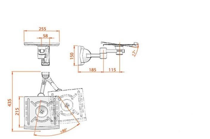 - Регулировка крепления Выдвижение, Наклон, Поворот