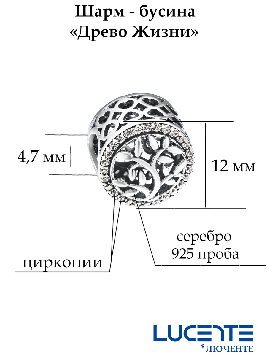 Lucente Шарм из серебра 925 пробы "Древо жизни" с камнями на браслет