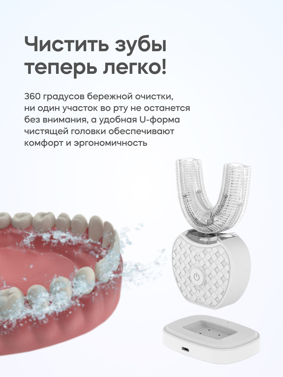 Прибор для чистки зубов Azdent 360 градусов, тип U , голубой
