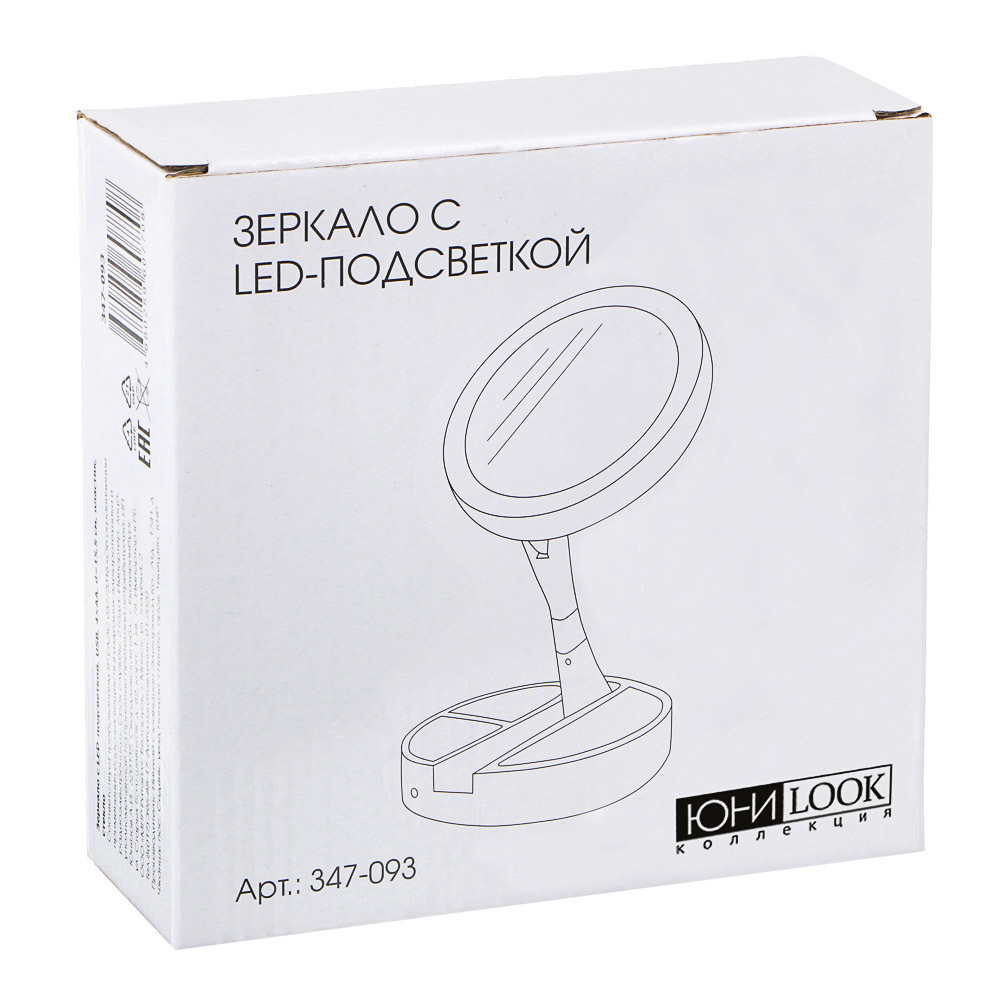 Зеркало настольное с LED-подсветкой, USB, 4хАА, пластик, стекло, d15,5см ЮниLook 347-093