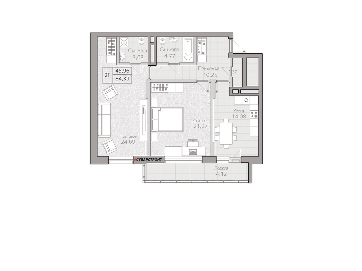 Квартира 84,39 кв.м.(2к) в ЖК "Столичный" дом 70/3 кв. 175, г. Казань. Услуга бронирования!