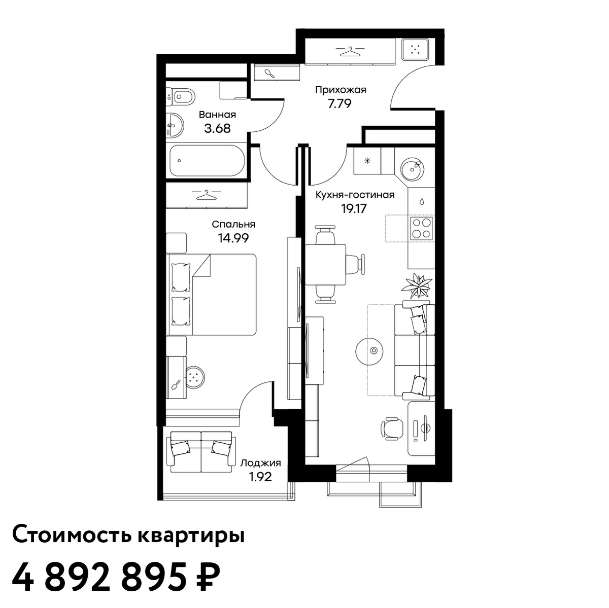 • Стоимость квартиры 4 892 895 руб (102 900 руб/м2)