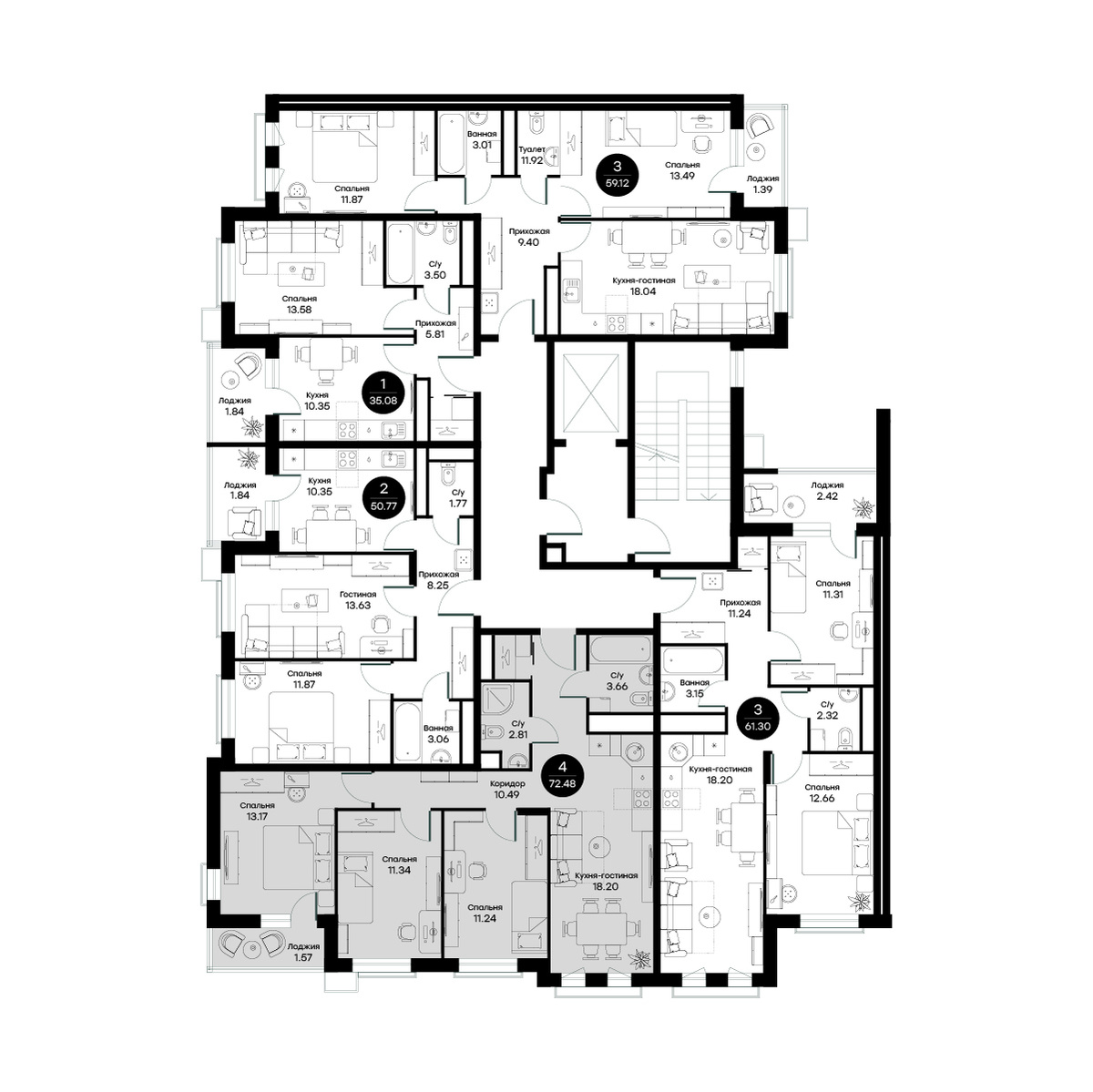 Квартира 72,48 м2 (4 к.) в ЖК Равновесие, Одинцовский р-н. Услуга бронирования!