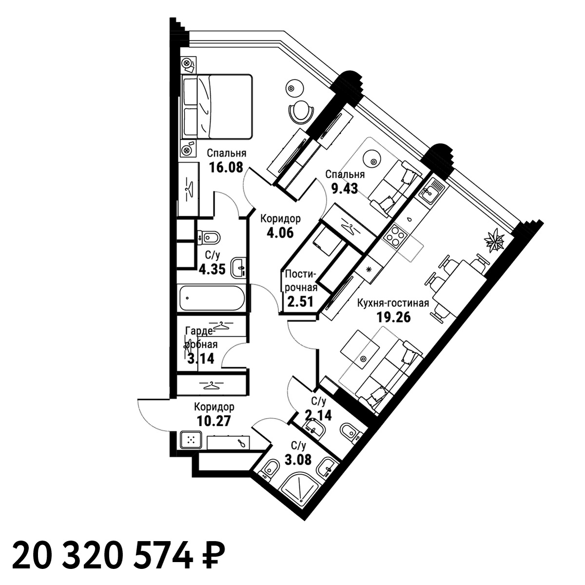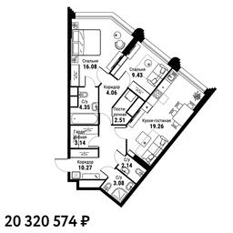 • Стоимость квартиры 20 320 574 руб (273 420 руб/м2)