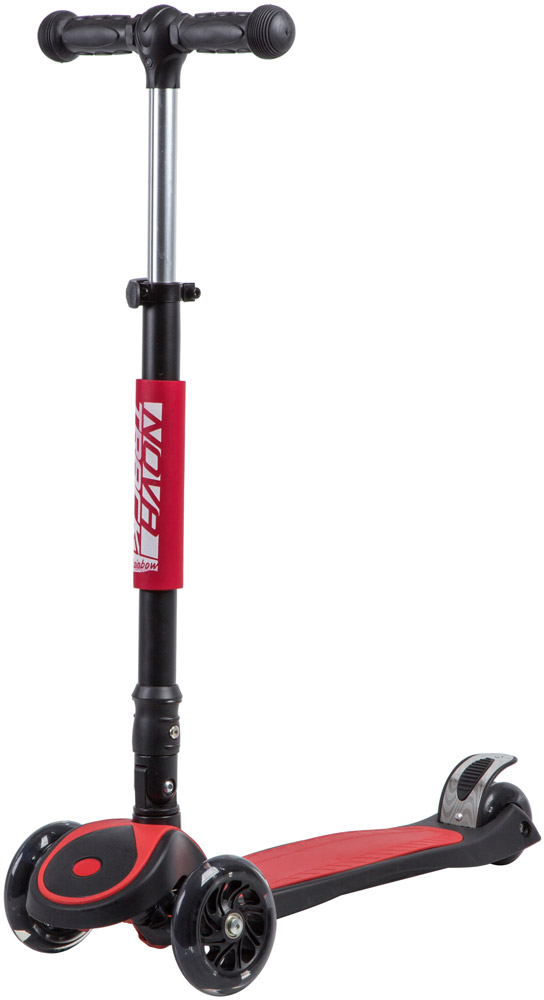 Самокат-кикборд для детей от 3 лет. Материал рамы: пластик. Регулируемая высота руля. Колеса: светящиеся PU, 120/90 мм. Мягкие резиновые грипсы. Ножной тормоз. Складная конструкция. Максимальная нагрузка: 50 кг. Цвет: красный.