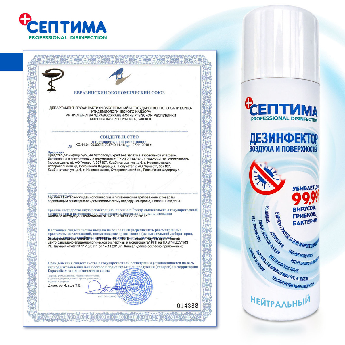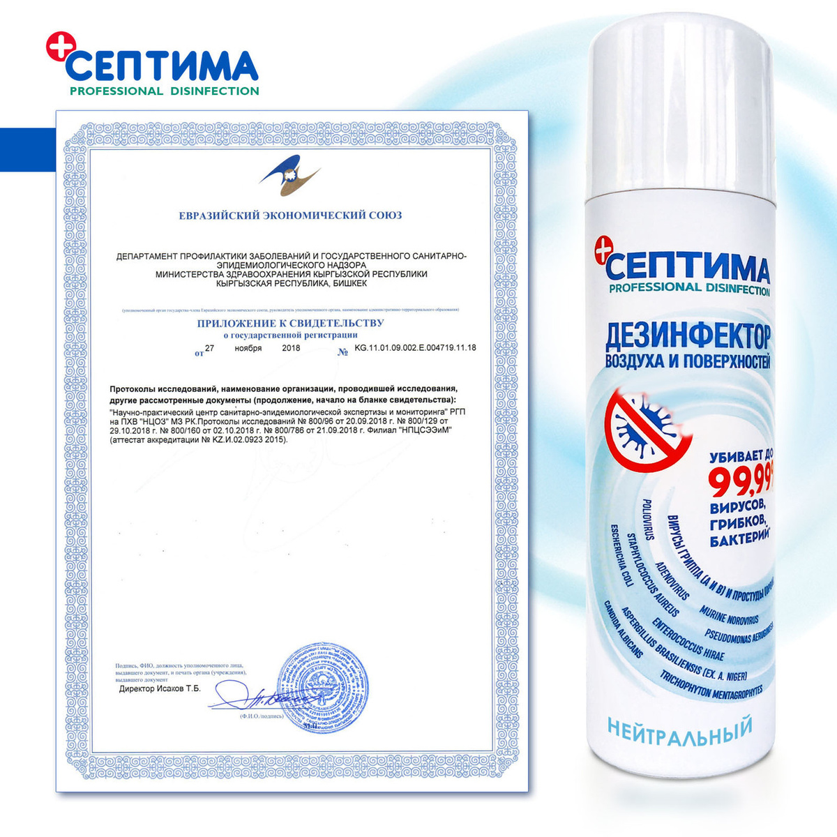 Дезинфицирующее средство СЕПТИМА Нейтральный антисептик спрей без запаха средства дезинфекции не оставляет следов предназначен для дезинфекции воздуха и поверхностей 250 мл