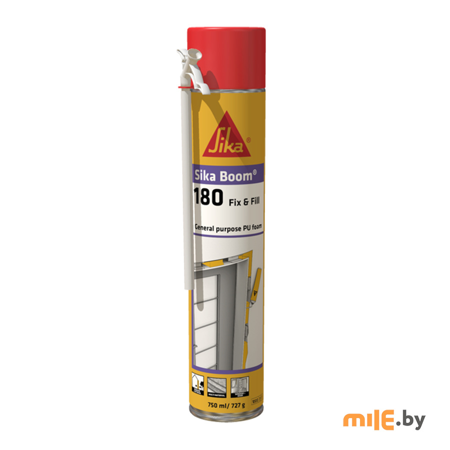 Sika Boom 180 Fix & Fill — однокомпонентная полиуретановая монтажная пена в аэрозольной упаковке, наносимая при помощи адаптера. В качестве газа – вытеснителя применяется углеводородный пропеллент (пропан, бутан). Затвердевает под действием влаги воздуха и влаги поверхности, на которую наносится. Затвердевшая пена относится к классу полужестких пен. Не разрушает озоновый слой атмосферы.